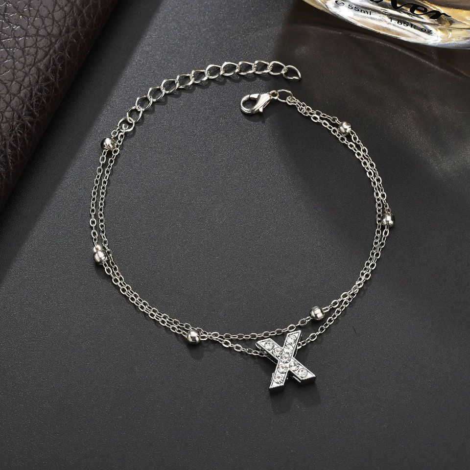 Милые 26 Браслеты с буквами для женщин очаровательные буквы Стразы двухсторонние браслеты золото серебро Металл Ручная работа рождественские украшения