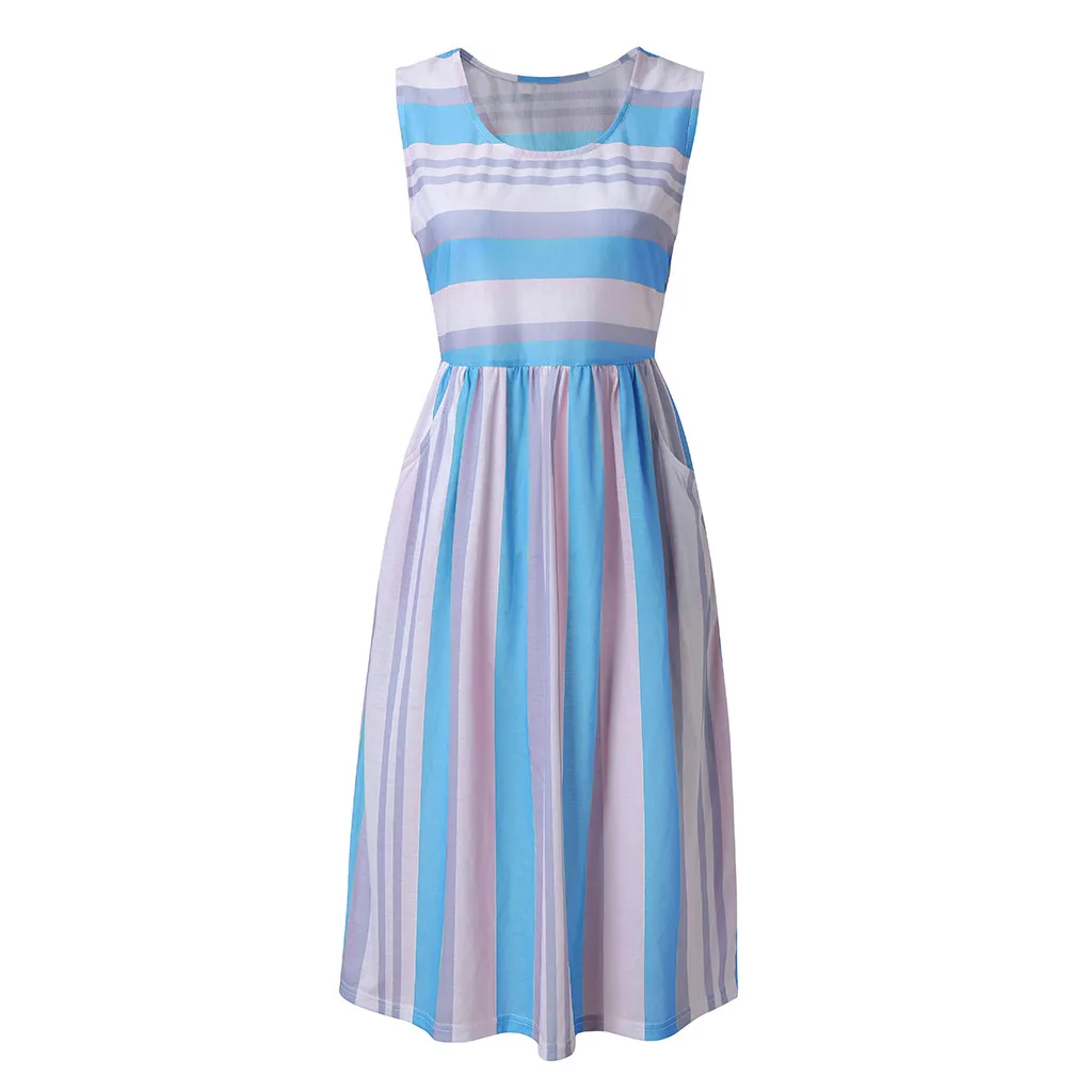 Женское летнее повседневное Полосатое платье без рукавов с круглым вырезом и принтом