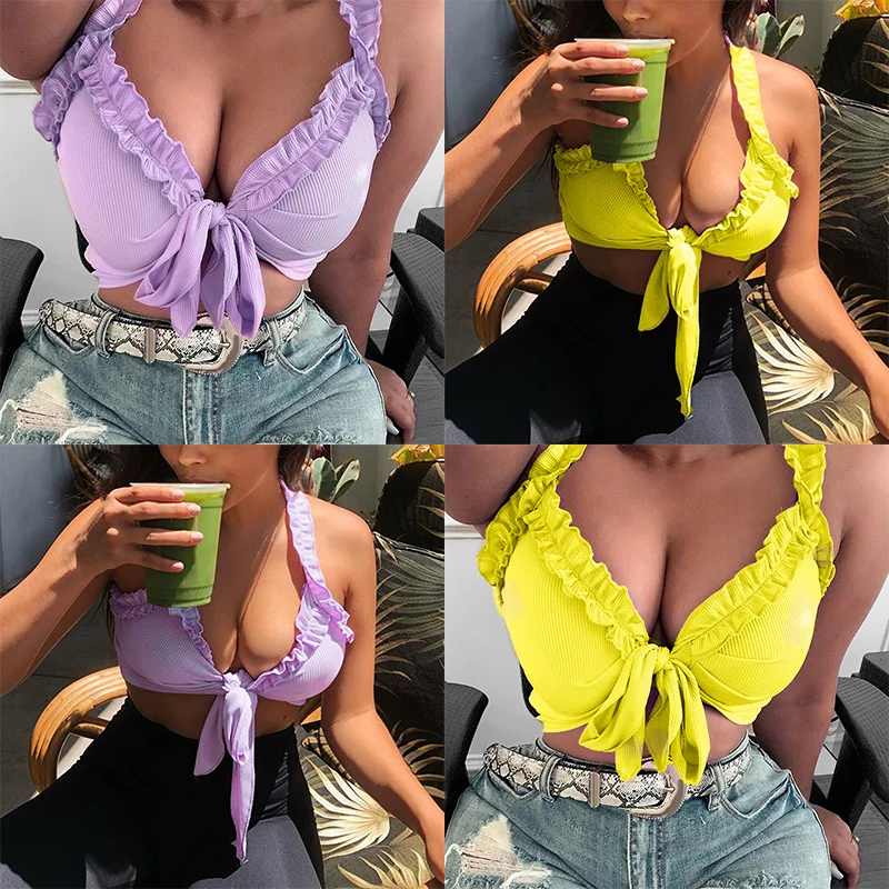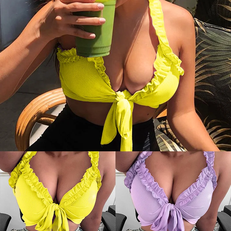 * Описание товара:Женская одежда, летняя мода, тонкие сексуальные эластичные Топы/блузка, на бретельках, бюстгальтер с бантом