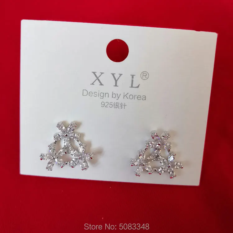 Новинка 925 года; женские серебряные серьги-гвоздики со стразами и цветком; Рождественский подарок на день рождения для подруги