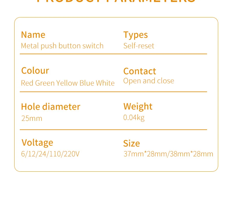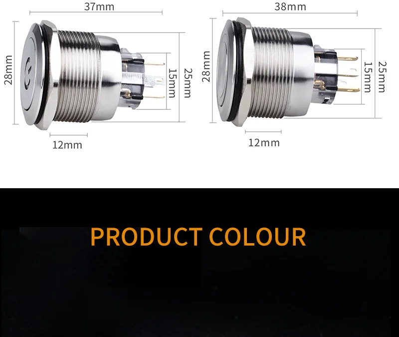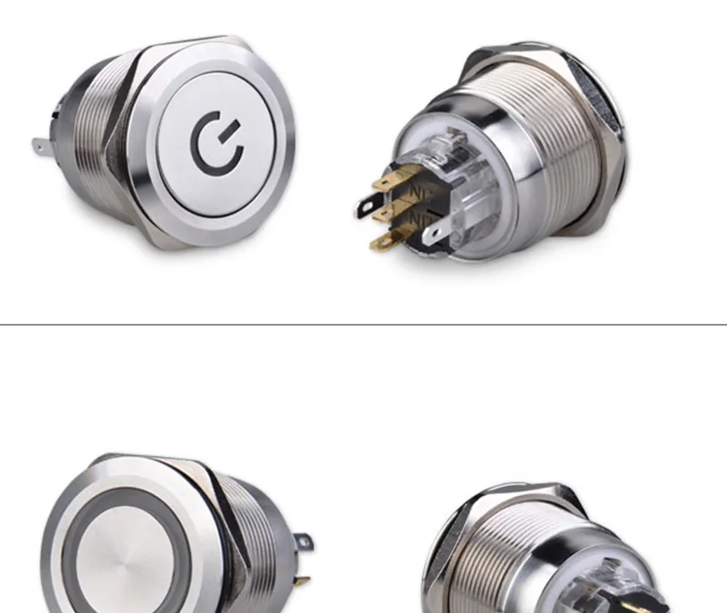 Материал: Контактное лицо: серебряный сплав Кнопка: нержавеющая сталь/латунь одетый никель Корпус: нержавеющая сталь/латунь одетый никель Основание: PBT Тип лампы: Кольцо Номинальное напряжение: 6 В/12 В/24 В/110 В/220 В Цвет лампы: красный, зеленый, желтый, синий, белый Срок службы лампы: 4000 часов Диаметр установки: 12 мм Номинальная мощность переключателя: 5А/250В переменного тока Форма: плоские круглые Цвет: красный, зеленый, синий, желтый, белый Напряжение: от 6 В до 220 В Функция: фиксация (1NO) Терминал: контактный терминал Температура: от-20 до 55 градусов