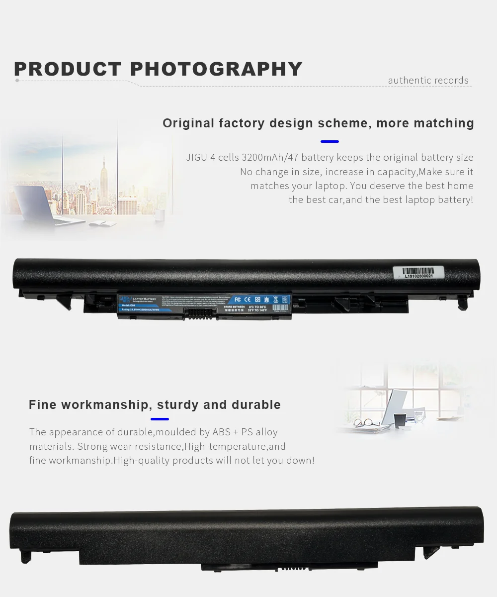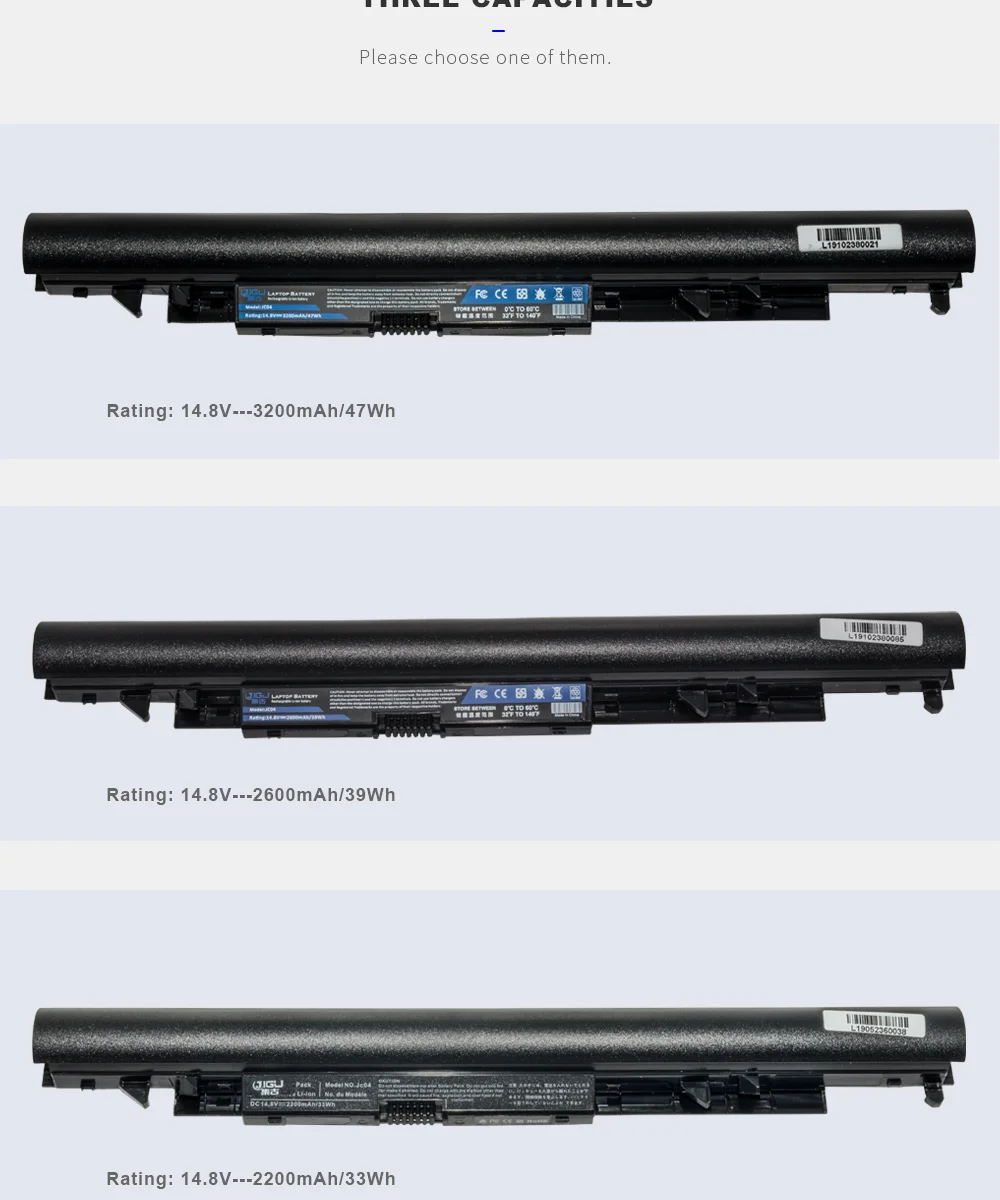 Для Hp jc04 Аккумуляторы для ноутбуков могут заменить следующий номер детали: Для HP 919682-121 HSTNN-LB7W 919682-221 HSTNN-PB6Y 919682-231 JC03031 919682-241 JC03031XL 919682-421 JC03XL 919682-831 JC04 919701-850 JC04041 HSTNN-DB8A JC04041Xl HSTNN-DB8B JC04XL HSTNN-DB8F TPN-C129 HSTNN-H7BX TPN-C130 HSTNN-IB7X TPN-Q186 HSTNN-IB8A TPN-Q187 HSTNN-L67N TPN-W129 HSTNN-LB7V TPN-W130 Jc04 Аккумулятор для ноутбука совместим со следующими моделями: Для HP 14-bs000 250 G6 2UB95ES 14-bs100 250 G6 2UB96ES 14-bw000 250 G6 2UB97ES 14g-bx000 250 G6 2UC37ES 15-bs000 250 G6 3CA12ES 17-ak000 250 G6 3CA16ES 17-bs584ng 250 G6 3DN10ES 240 G6 250 G6 3DN11ES 245 G6 250 G6 3DN12ES 246 G6 250 G6 3DN13ES 250 G6 250 G6 3DN14ES 250 G6 1WY74EA 250 G6 3QL57ES 250 G6 1WY80EA 250 G6 3QL59ES 250 G6 1WY81EA 250 G6 SP 1WY63ES 250 G6 1WY82EA 250 G6 SP 2LB59ES 250 G6 1WY85EA 250 G6 SP 2RR63EA 250 G6 2HG65ES 250 G6 SP 2UB91ES 250 G6 2HG67ES 250 G6 SP 2UB98ES 250 G6 2HG68ES 250 G6 SP 2UC27ES 250 G6 2HG69ES 250 G6 SP 2UC28ES 250 G6 2HG70ES 250 G6 SP 2UC29ES 250 G6 2HG71ES 250 G6 SP 2UC30ES 250 G6 2HG73ES 250 G6 SP 2UC31ES 250 G6 2RR62ES 250 G6 SP 2UC32ES 250 G6 2RR64EA 250 G6 SP 2UC33ES 250 G6 2RR66EA 250 G6 SP 2UC35ES 250 G6 2RR67EA 250 G6 SP 3CA13ES 250 G6 2RR68EA 250 G6 SP 3CA15ES 250 G6 2RR69ES 250 G6 SP 3DN23ES 250 G6 2UB92ES 255 G6 250 G6 2UB93ES 255 G6 SP 250 G6 2UB94ES Павильон 17z