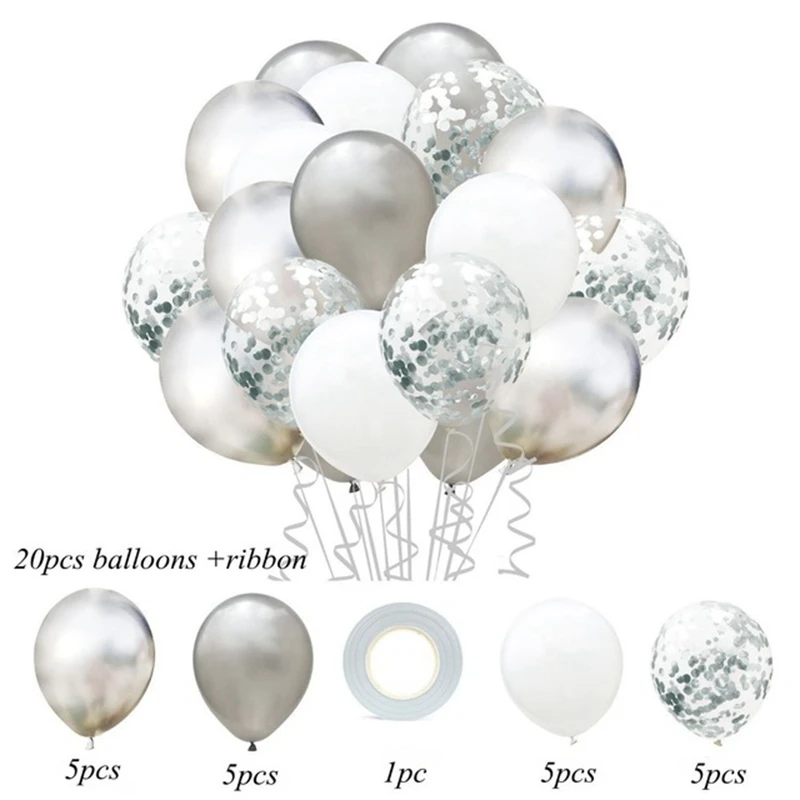 Материал: 2,8 г хорошего качества латексный воздушный шар. Размер: 12 дюймов В том числе: 20 воздушных шаров, 1 шт. 5 м в длину х 5 мм в ширину ленты воздушных шаров. Подходит для любых вечерние: дня рождения, свадьбы, детского душа, Нового года, выпускного вечера и т. д. Примечание: Будет разница в цвете между цветом воздушного шара и изображением, прежде чем он будет надут. Новые латексные шары будут немного пахнуть, просто будьте в порядке при взрыве.