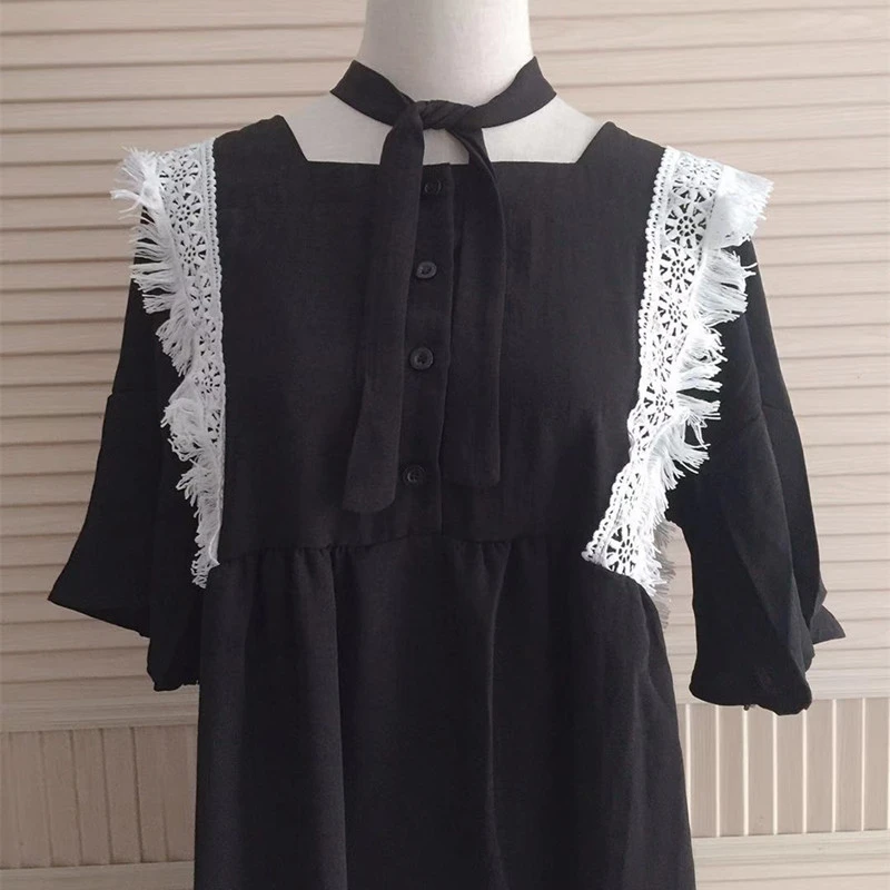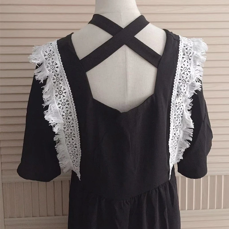Черное женское кружевное платье с круглым вырезом милое готическое летнее