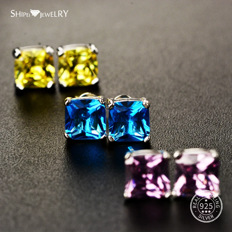 Женские квадратные серьги-гвоздики с кристаллами ShiPei, простые и сверкающие серьги с фианитом AAA, подарки на день Святого Валентина