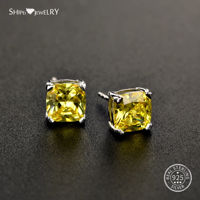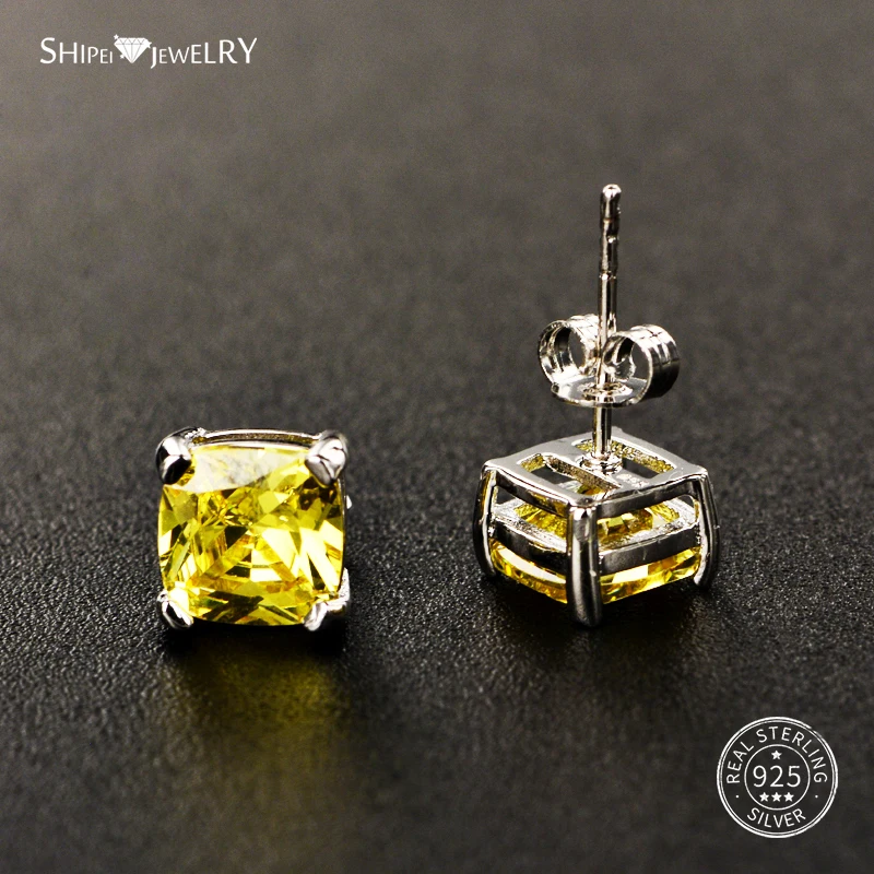 Эти серьги имеют 7*7 мм квадратную огранку розовый желтый синий сапфир и Стерлинговое Серебро с 3 слоями белого золота, антиокислительная обработка, чтобы держать его блестящим всегда. В комплект входит простая коробка для ювелирных изделий!