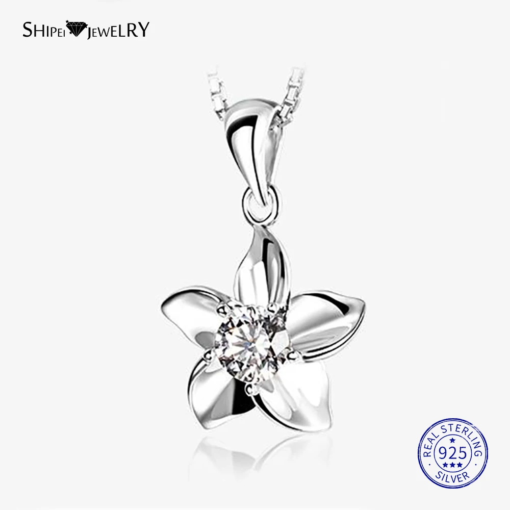 Женский кулон с цветком из белого сапфира Shipei, 100% Стерлинговое Серебро 925 пробы, подарок на Рождество