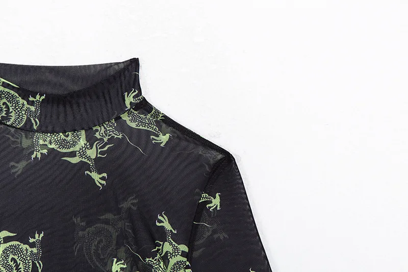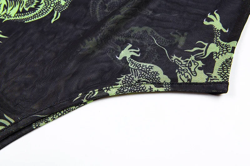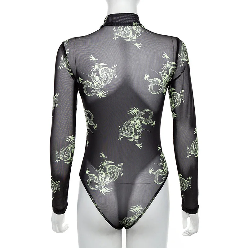 Боди с длинными рукавами и принтом дракона, боди с круглым вырезом, модный сексуальный облегающий костюм, 2019