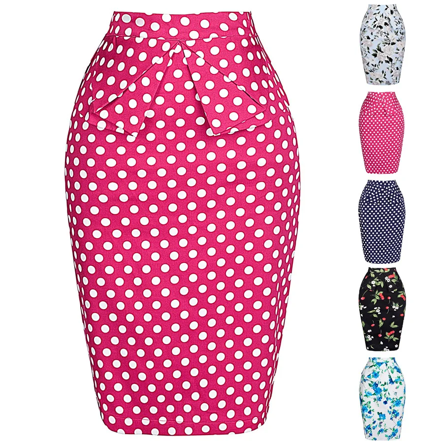 * Описание товара:В западном стиле Для женщин'S винтажная хлопковая юбка с запахом в горошек в стиле ретро с потайной молнией сзади.