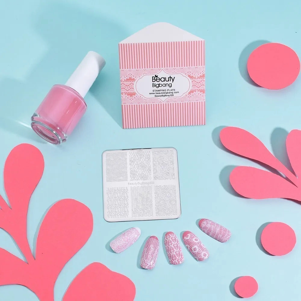 2. Нанесите лак для ногтей на желаемое изображение в пластине. (Рекомендуется: Используйте однотонный лак для ногтей, чтобы текстура была толще, чем другие лаки для ногтей)