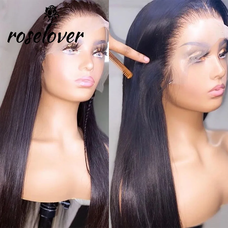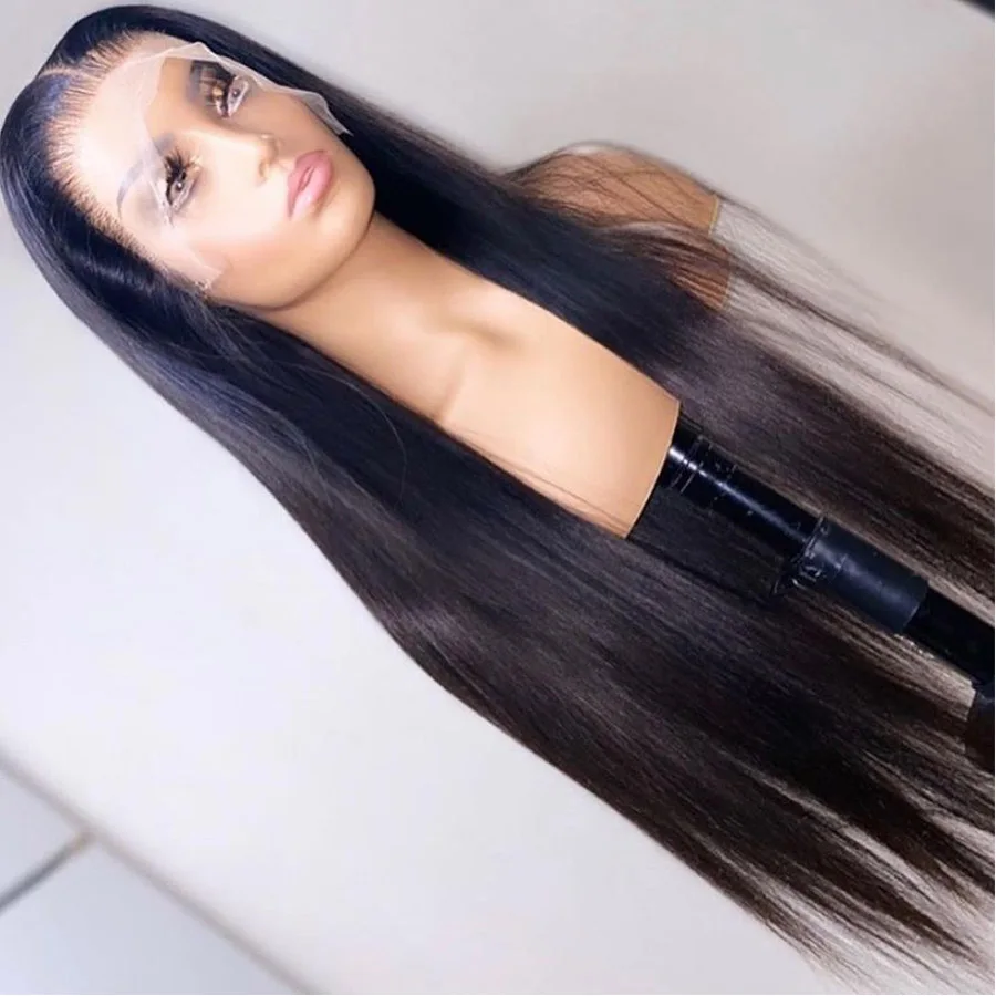 Прямые 13*6 человеческие волосы на фронте шнурка парики натуральный черный цвет парик незаметные перуанские Remy волосы парики предварительно сорванные отбеливатель узлы