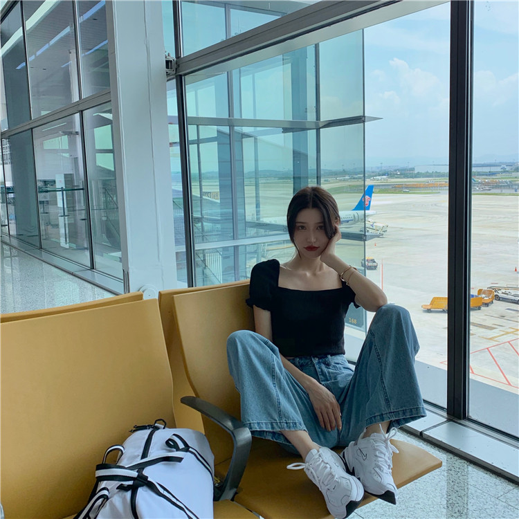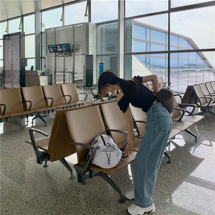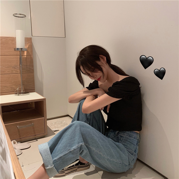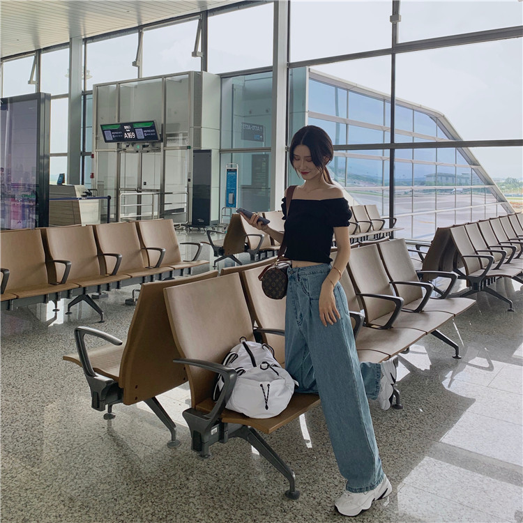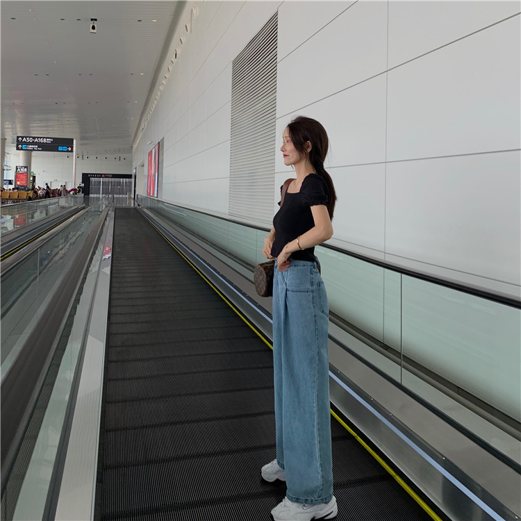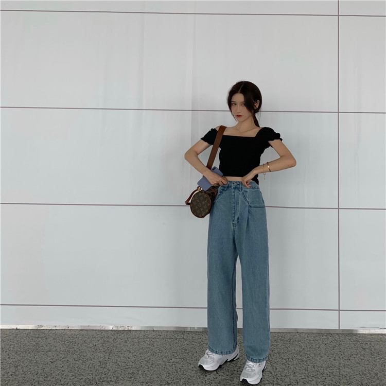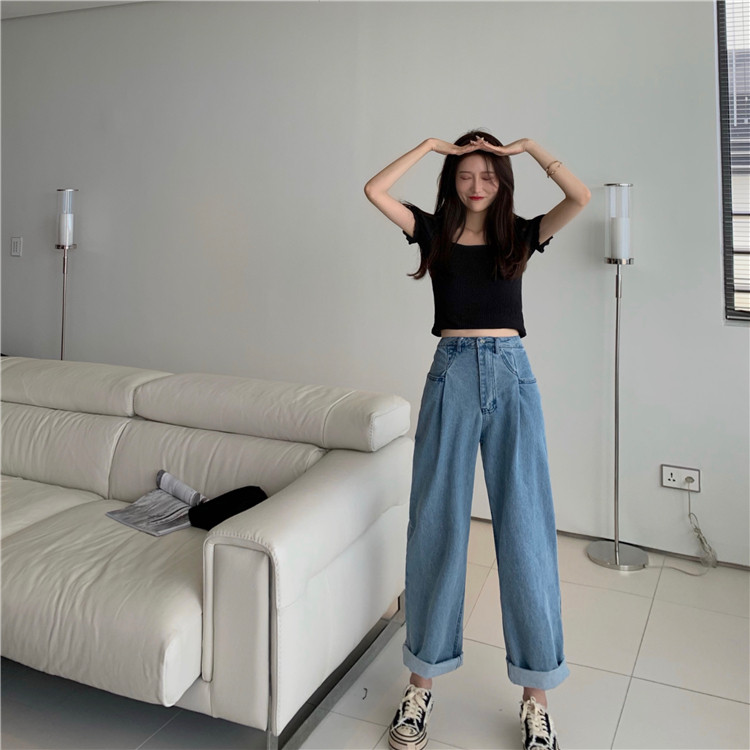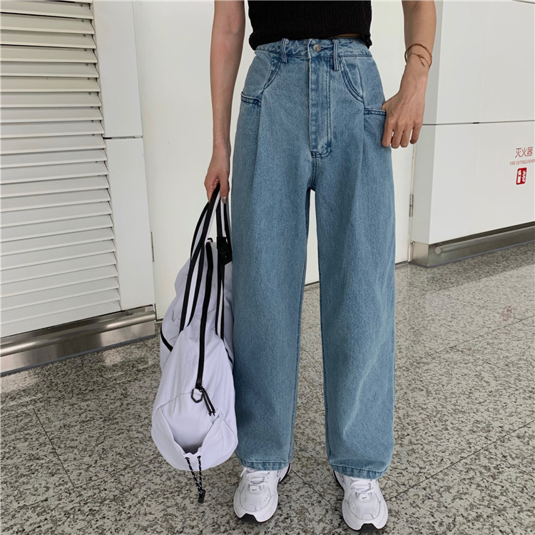 S-L осенние корейские стильные джинсы с высокой талией, женские повседневные синие джинсы с широкими штанинами, женские джинсы для мам