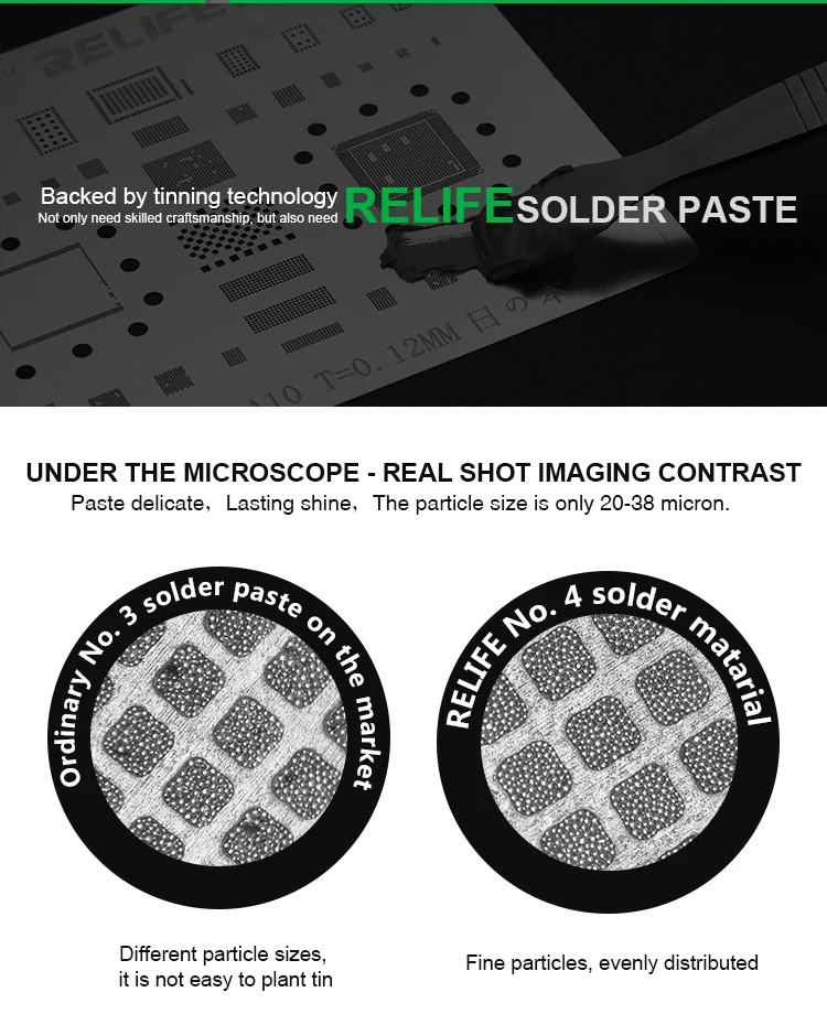 Паяльная паста RELIFE Flux-RL-400 RL-401 RL-402 183 °C паяльная Оловянная 20-38um, паяльная паста RELIFE, уникальное производство паяльной технологии, дающая новое определение технологии оловянной основы