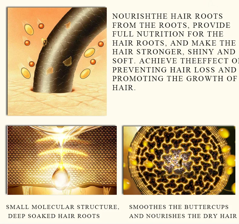 Содержит экстракт марокканского ореха, он был подвержен передовой в мире технологии экстракции, чтобы эффективно противостоять сухим, обезвоженным и неэластичным волосам. Он концентрируется на ремонте поврежденных кончиков волос, мгновенно разглаживая волосы. В то же время, он обеспечивает полное питание корней волос, делая волосы более сильными, блестящими, мягкими. Достичь эффекта предотвращения выпадения волос и содействия росту волос.