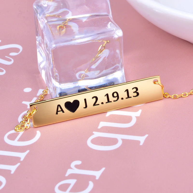 Новый 925 стерлингового серебра ожерелье на заказ Гравировка имени или дата кулон