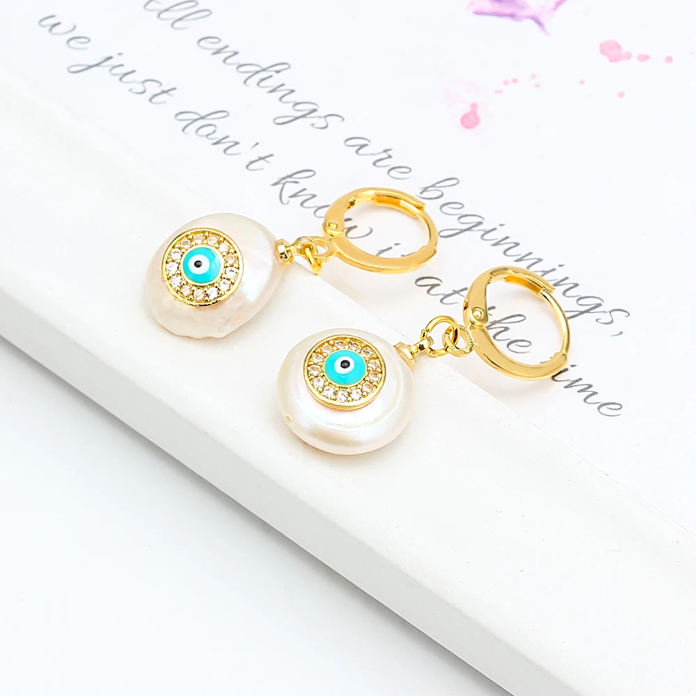 С клипсами Дурной глаз висящие каплевидные жемчужные длинные серьги в виде цветка, технология микрозакрепки, серьги в виде капель с подвесной Золотой Серебряный Цветной Круг, модное ювелирное изделие для женщин EY6276