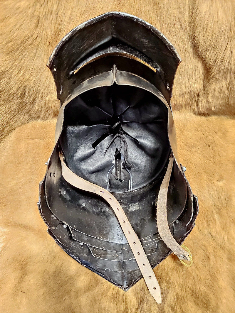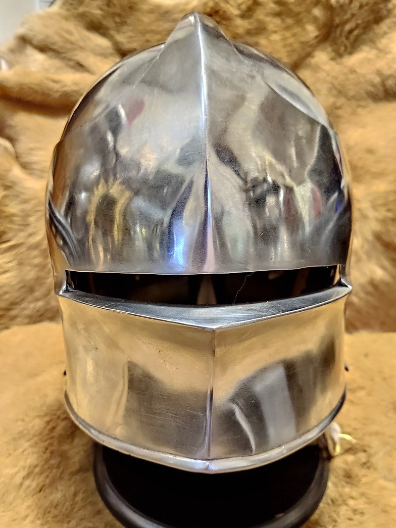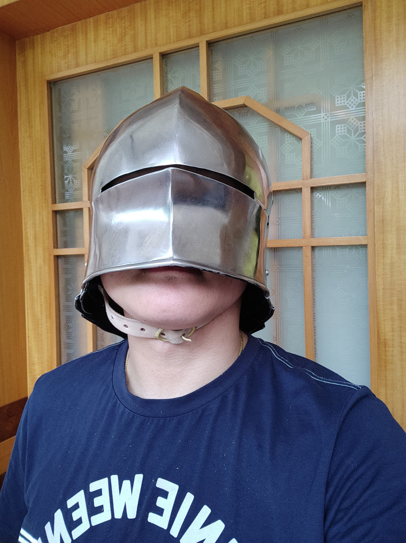 Этот немецкий шлем основан на оригинальном 1490 15-го века. Оригинальный салет был в основном изготовлен производителем миланских бронежилетов, а позже в Германии этот тип был модифицирован и массово произведен. Немецкий шлем-шарлер характеризуется несколькими плоскими бортами, твердым шлемом и ударом распределяется по всему шлему. Этот шлем оснащен маской. Защита для шеи состоит из различных частей, которые позволяют удобно перемещать голову.