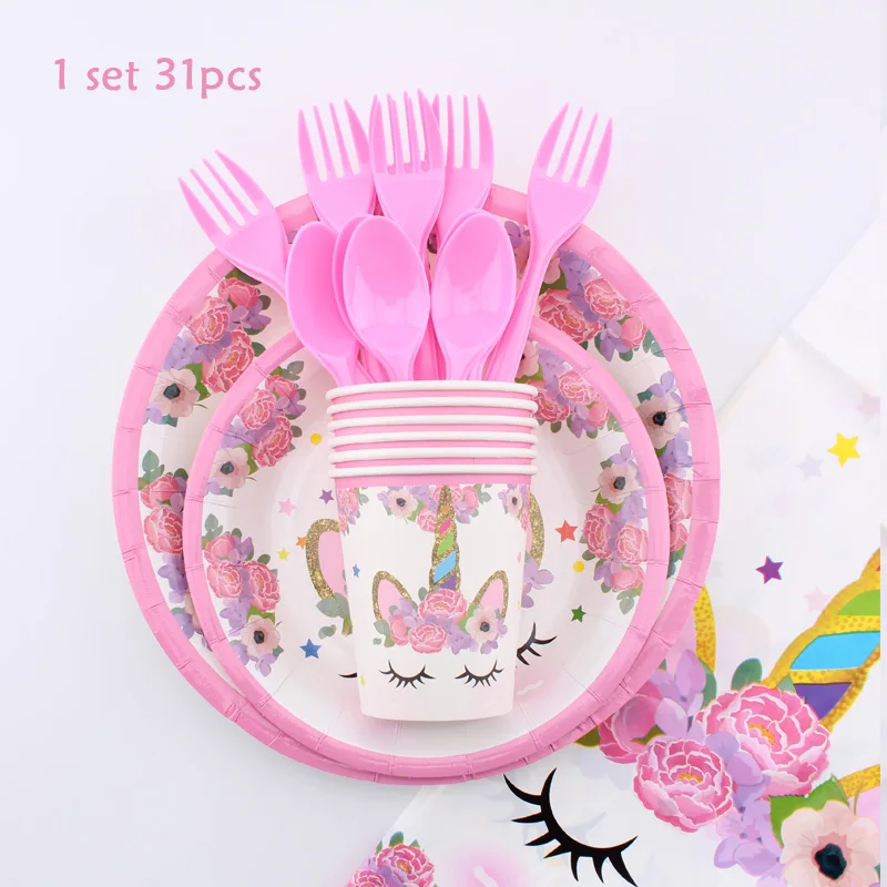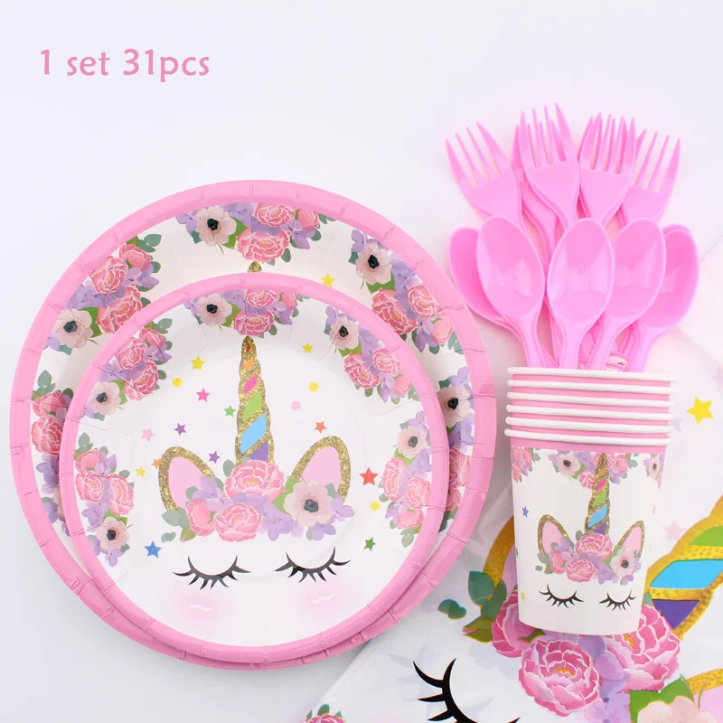 Единорог тема украшения для девочек День Рождения вечерние свадебные подарки для детей вечерние одноразовые столовые приборы набор вечерние украшения Suppli