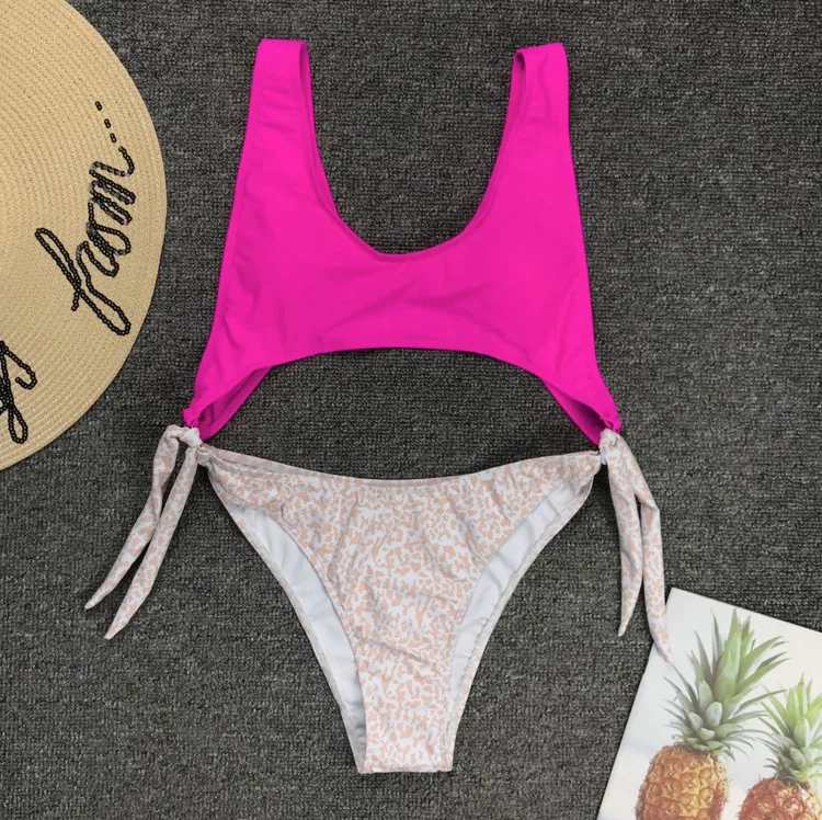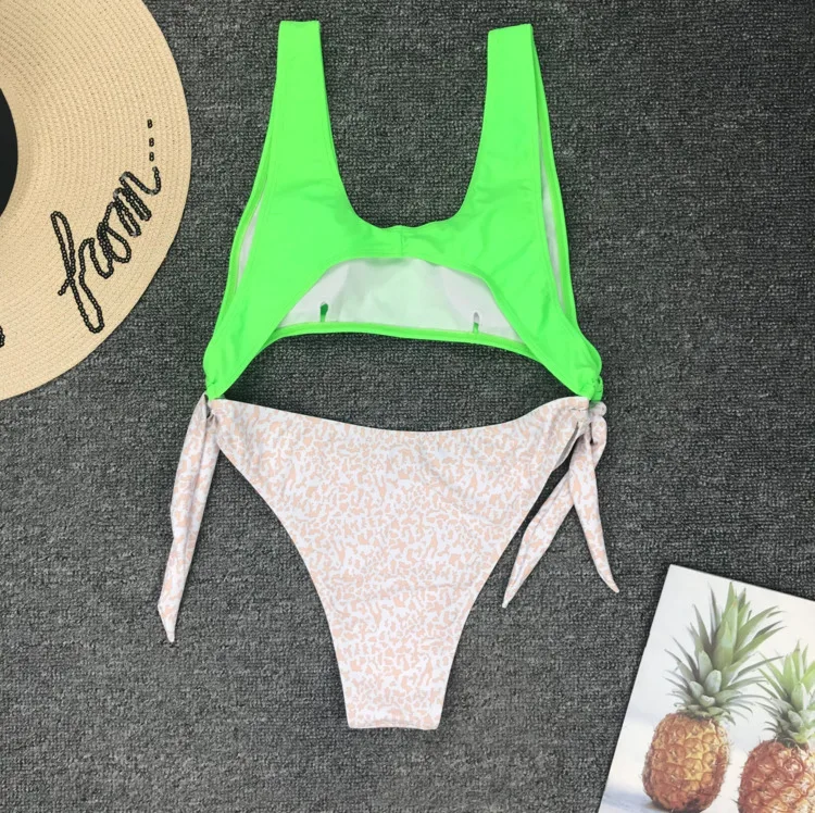 Леопардовый принт, Раздельный Флуоресцентный цвет, сексуальный бикини, купальный костюм для женщин, Цельный купальник, женский купальник, монокини