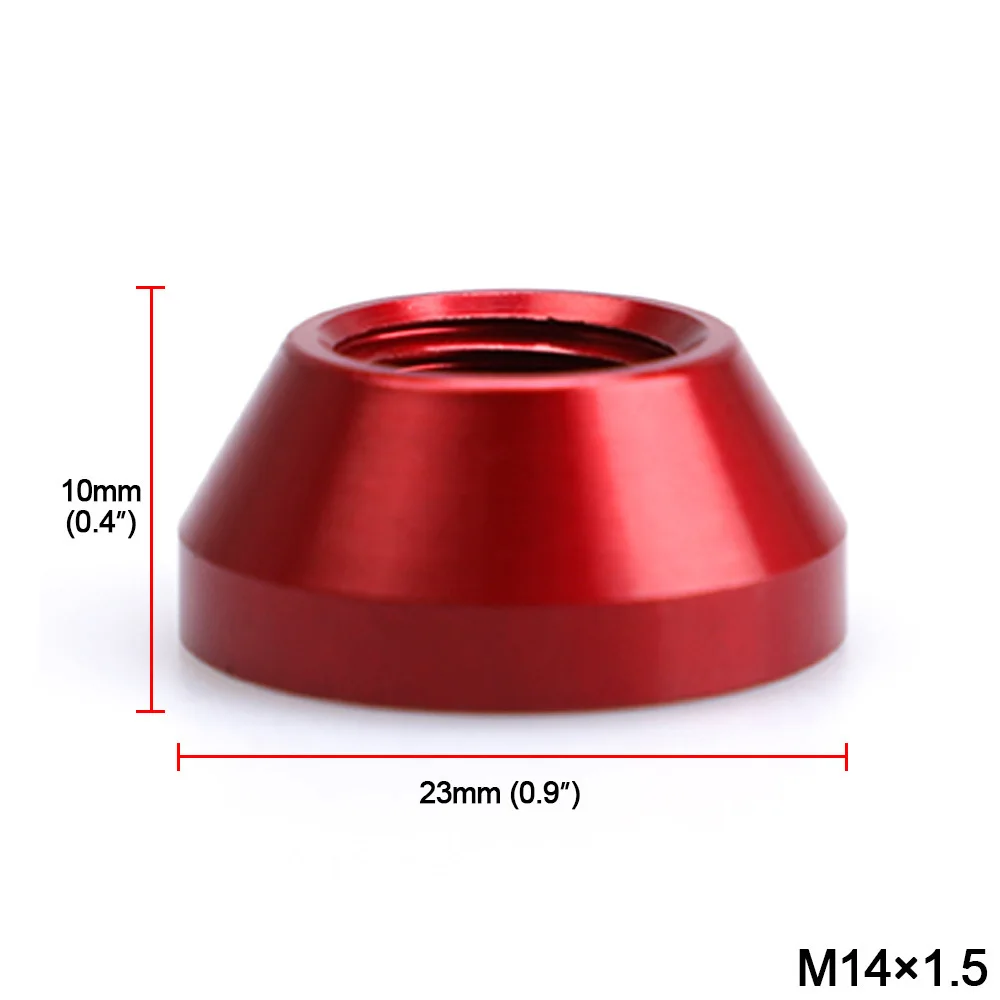 Функция конической крышки: защита от износа Спецификация: M14X1.5 M14X1.25 M12X1.5 M12X1.25 Текстура алюминия более мягкая, поэтому она может улучшить износостойкость гайки.