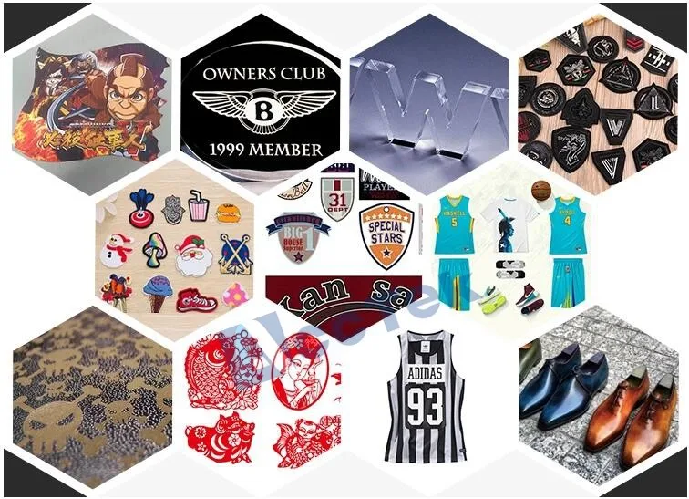 Реклама, искусство и ремесла, кожа, игрушки, одежда, модель, обивка зданий, компьютеризированная вышивка и вырезка, Упаковочная и бумажная промышленность.