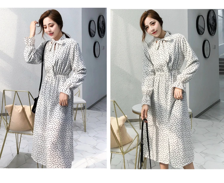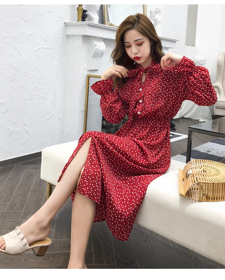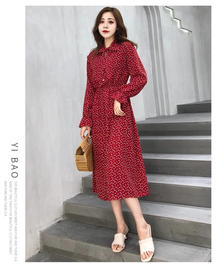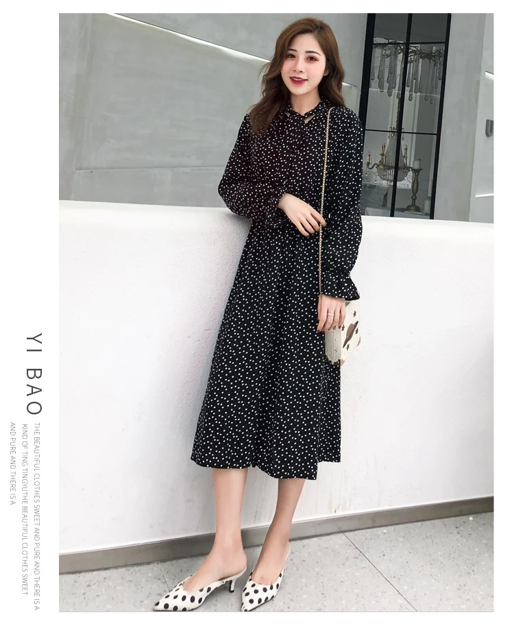 12 цветов, лето-осень, женское черное платье с принтом в виде сердца, Элегантное повседневное платье в горошек, винтажное платье с длинным рукавом для подиума, Vestidos