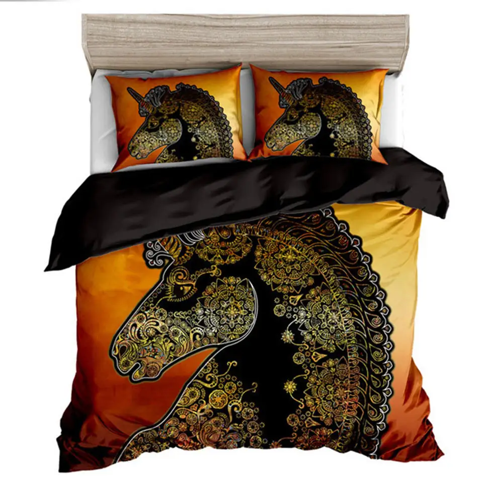 3 D цифровая печать на заказ Черное постельное белье с золотым принтом 2/3 штук