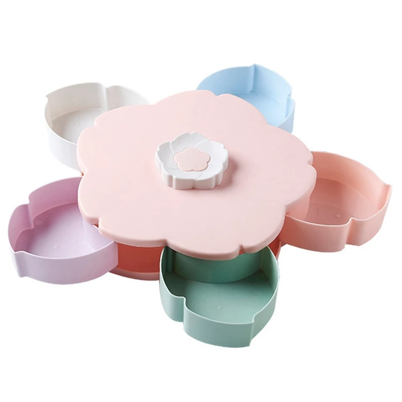 Вращающаяся коробка для закусок в форме лепестка, поднос для конфет, коробка для хранения еды, свадебные конфетные тарелки, двухслойные сухофрукты, органайзер для хранения