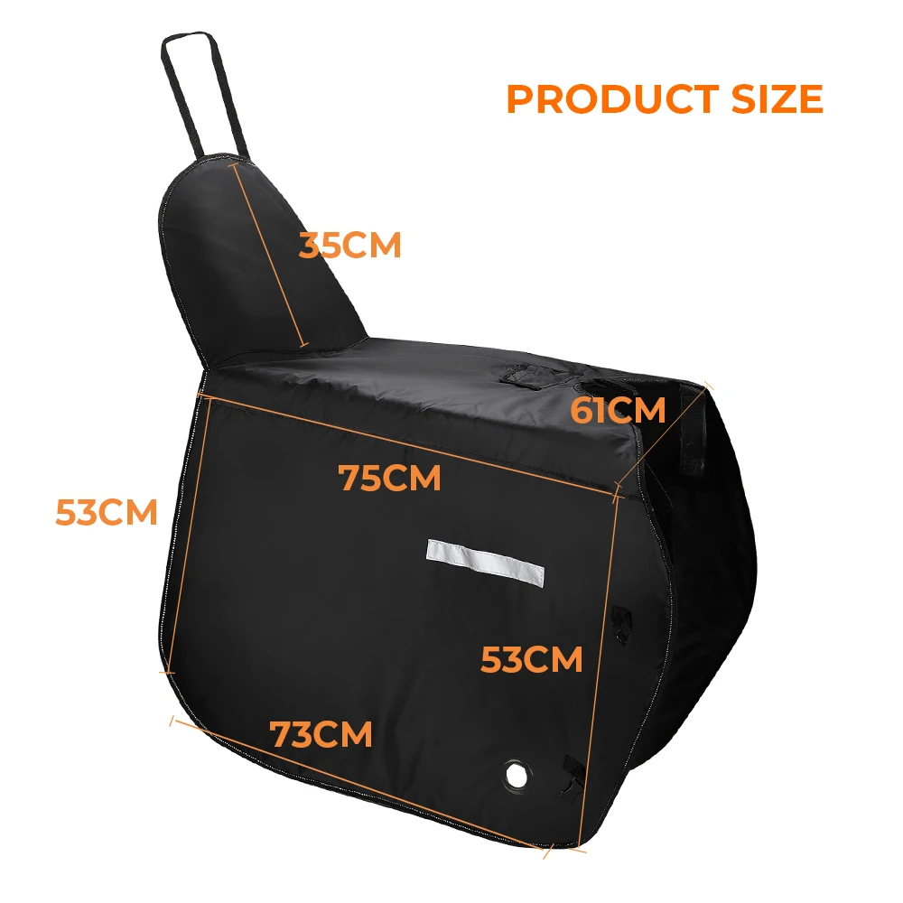 -Прочный нейлоновый водонепроницаемый чехол для улицы -Внутренняя подкладка для большего ощущения тепла. -Теплоизоляционные швы -Противоугонная система (металлическое кольцо) доступна только в моделях без винтов. -Большой водонепроницаемый карман для слайдов. -Светоотражающая лента безопасности.