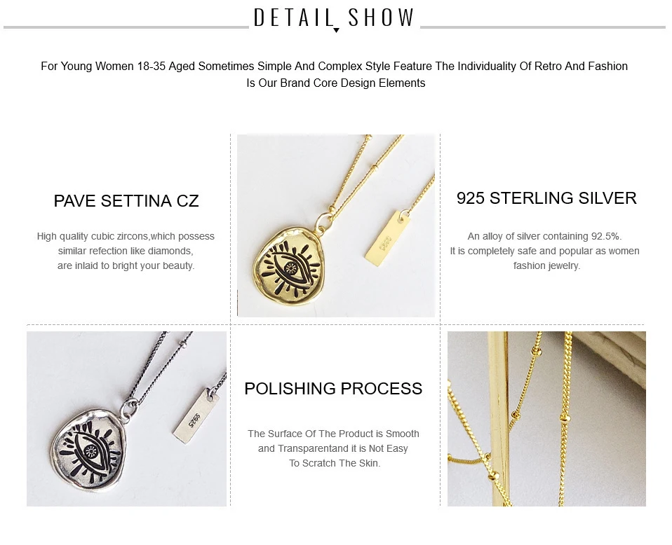 | Ожерелье с подвеской в виде сглаза, чистое серебро 925 пробы, золотой цвет, винтажное изящное ожерелье, Женские аксессуары, ювелирные изделия Бренд: S'Steel Основной камень: нет Тип формыОжерелье с подвеской в виде сглазаДля женщин 925 пробы серебряные ювелирные изделия Функции: модные вечерние аксессуары для свадебных украшений Pulseira Feminina Размер подвески: как на картинке Покрытие: Позолота 18K Материал: 100% 925 пробы серебра Длина цепочки: 45 см Вес: 4,2 г Случаи: Свадьба Помолвка свидание выпускной вечер Подарок для: мама, девушка, жена, дочь, подружка Экологический Стандарт: без свинца, никеля, кадмия |