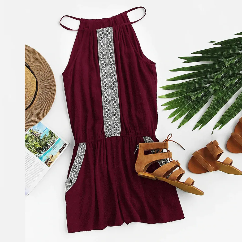 Женская Повседневная вышитая лента, комбинезон с карманами