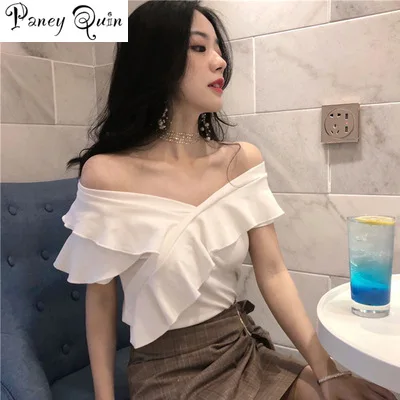 Белая Летняя футболка, Женская Повседневная футболка, тенниска с треугольным вырезом, размер Pus, тонкая белая футболка с коротким рукавом