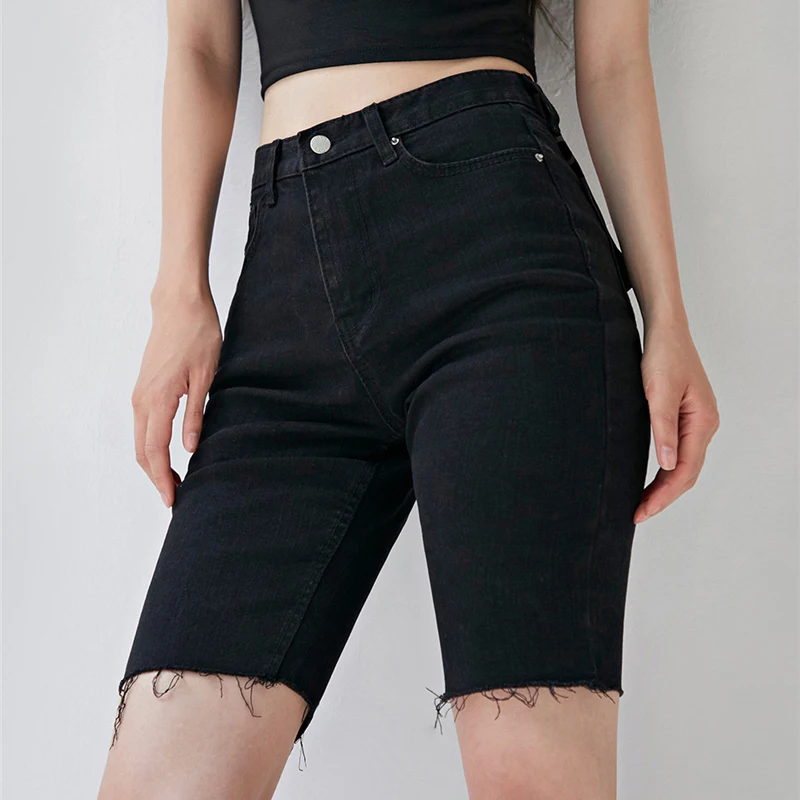 Женские летние шорты, повседневные черные джинсовые шорты стрейч с высокой талией и карманами, облегающие шорты до середины икры, джинсы для женщин, лето 2020