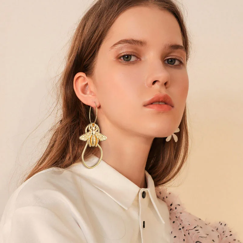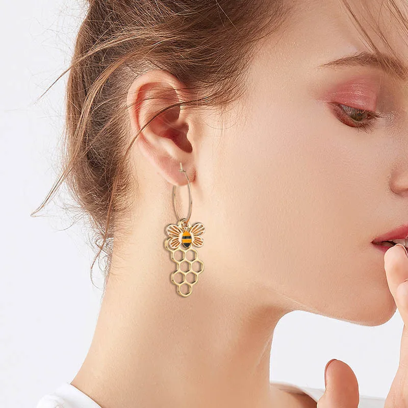 Кавайные серьги Honeybee, милые золотые серебряные серьги с жемчугом, полые сотовые серьги, рождественский подарок, ювелирные изделия ручной работы для женщин