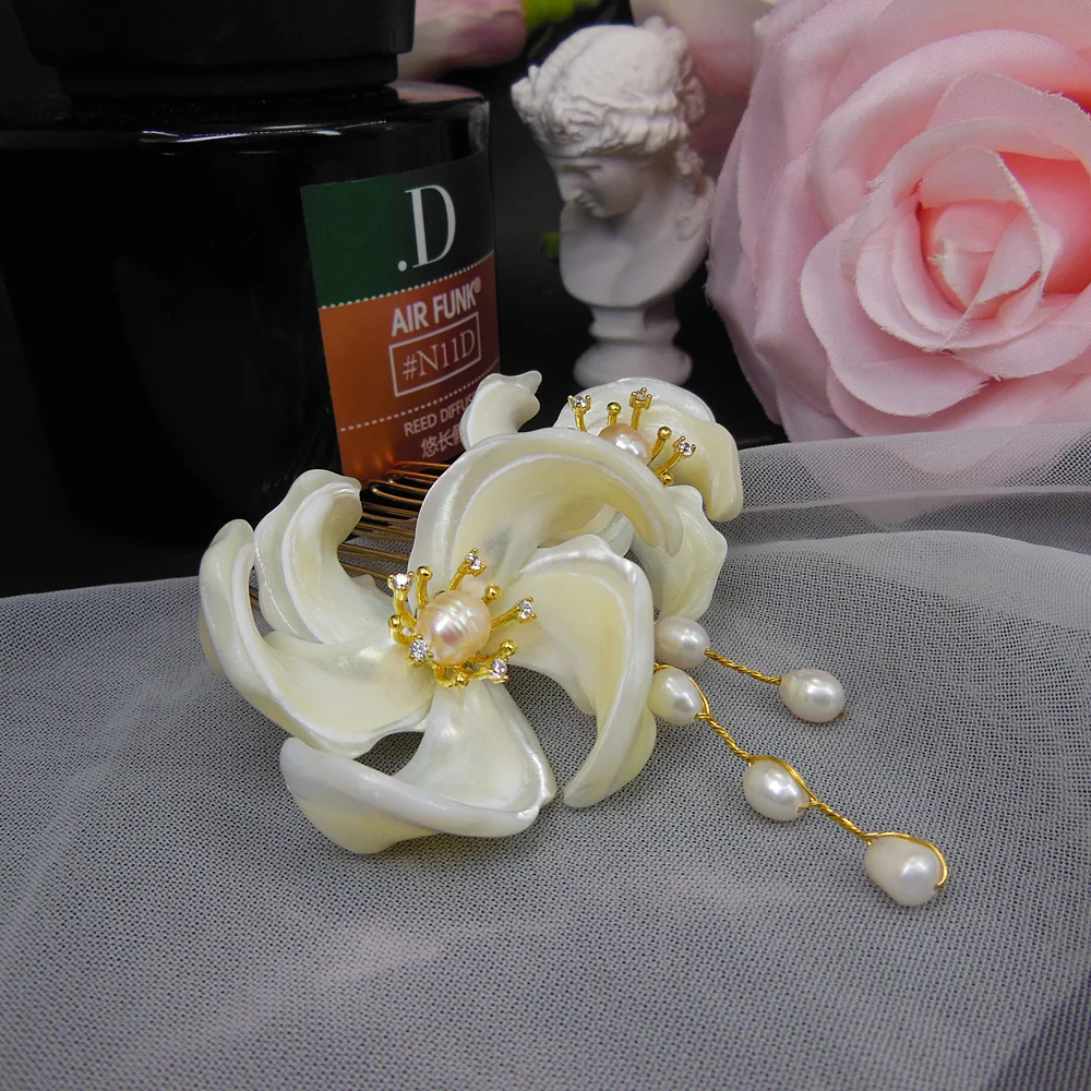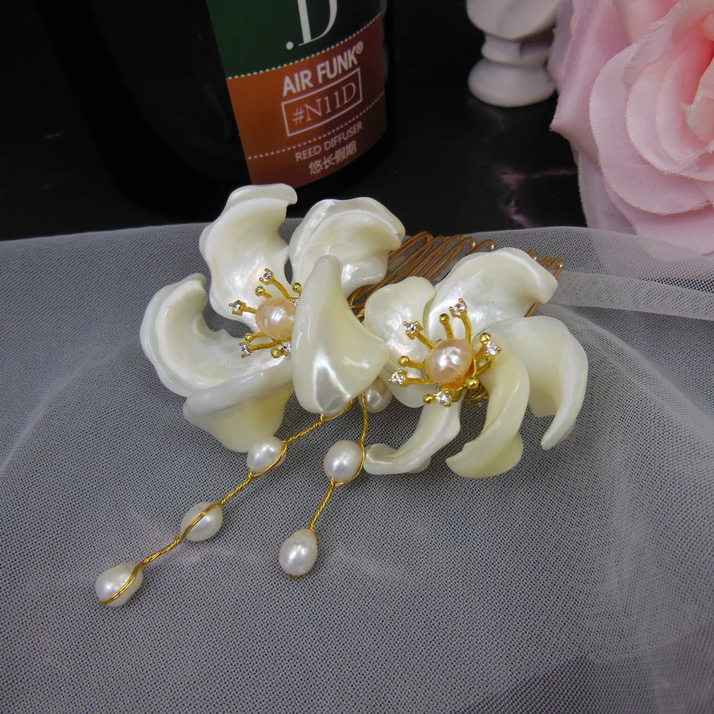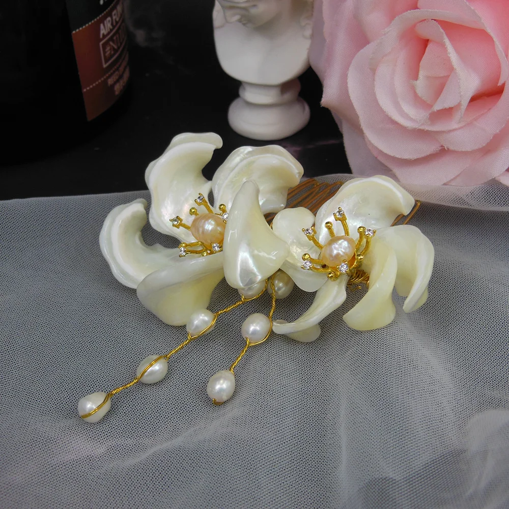 Резной натуральный цветок, свадебный гребень для волос, свадебные украшения для волос, аксессуары ручной работы, головной убор для невесты Fleur Bijoux Cheveux Mariage WIGO1411