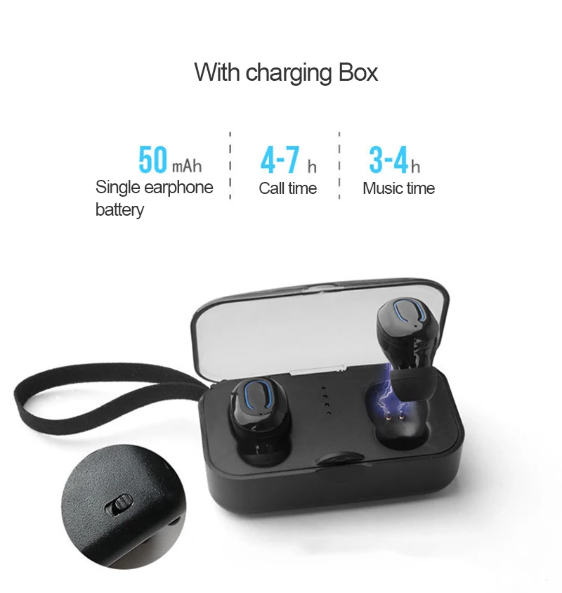 Технические характеристики изделия: Вход зарядки: 5 В/500 мА Время зарядки: 1 час Время работы в режиме разговора: 4-7 часов Время воспроизведения музыки: 3-4 часа Емкость Зарядки: 500 мАч Сопротивление: 32 Омега Рабочее напряжение: DC2.2V-5,5 V Этот посылка содержит: 1 * T18S Bluetooth беспроводная гарнитура 1*500 мАч Магнитный зарядный ящик 1 * USB микро-кабель 1 * Руководство пользователя