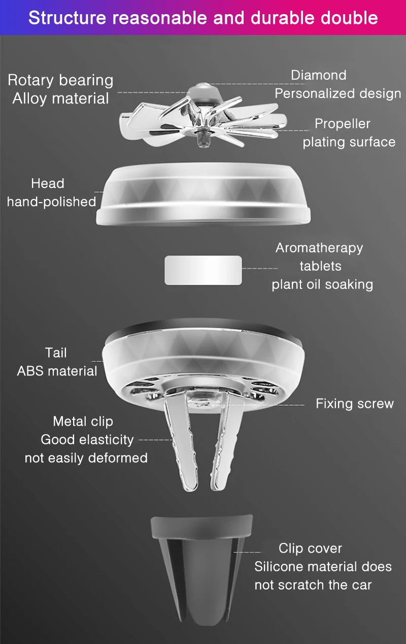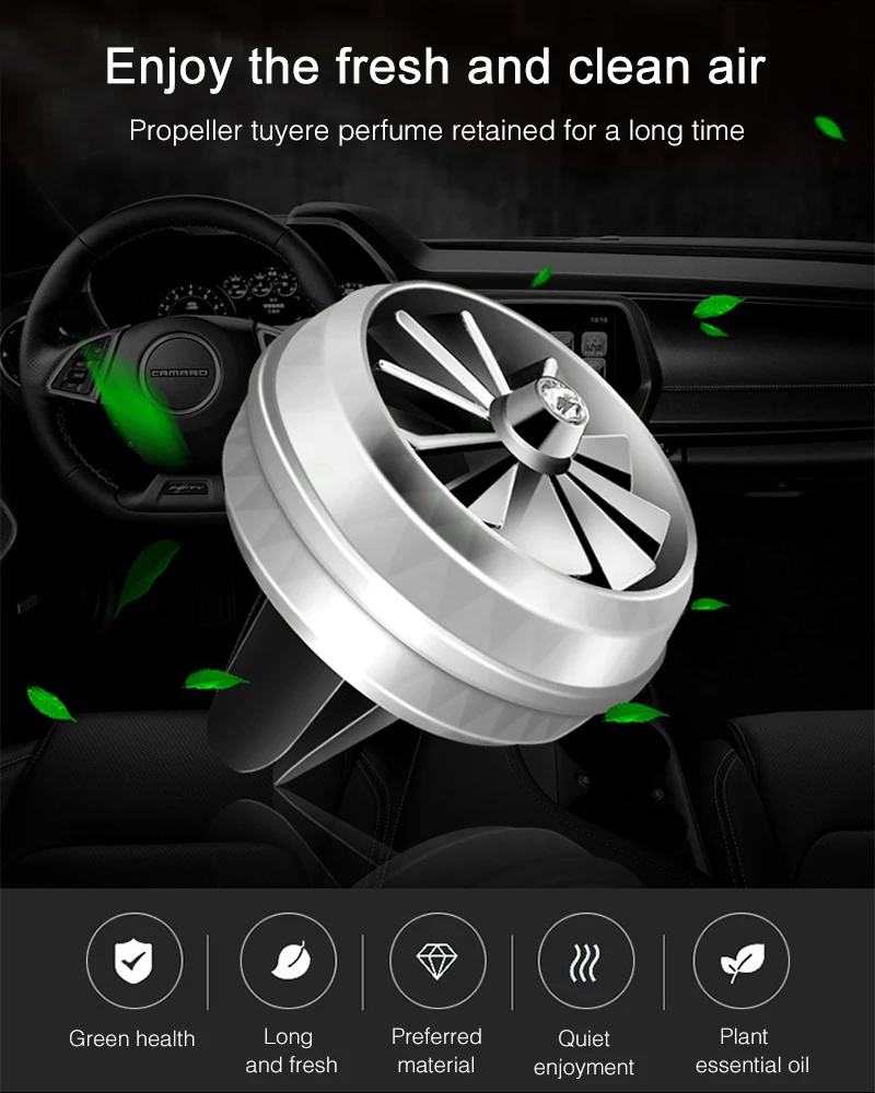 Особенности: 1. Легко удаляет все виды запахов, которые делают ваш автомобиль более освежающим. 2. Свежие маленькие, разные цвета на ваш выбор, такие как красный, черный, серебристый. 3. Больше безопасности. Вентилятор внутри, который не повредит вам. 4. Производство сплава. Небольшой ветер может также вращаться. Посылка: 1 x зажим для духов и 2 x твердый лист аромата (случайный запах) Или Ароматный лист x 5 (случайный запах)