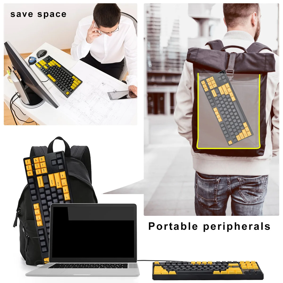 MX Технология Клавиатуры CHERRY MX оснащены немецкими золотыми перекрестными контактами для невероятно точного и надежного опыта. Лаконичный Дизайн Благодаря алюминиевому верхнему корпусу с потрясающим шлифованным покрытием и стойким к отпечаткам пальцев покрытием. Кроме того, Эргономичная подставка для рук с магнитной док-станцией. Технические характеристики: Бренд: GANSS Модель: G.S.87 см Переключатели: механические переключатели Cherry (MX) Размеры: 362*136*38 мм ± 5 мм Вес: 1250 ± 50 г Клавиш: 87 клавиш Интерфейс: USB 2,0 + 5 В 200 мА макс Совместимая Операционная система: Windows 10,Windows 8,Windows 7,Mac OS X,Windows XP,Windows VISTA. Посылка содержание: -Гарантийный талон -Инструкции -1 * keypuller -Клавиатура 1 * GS 87 см