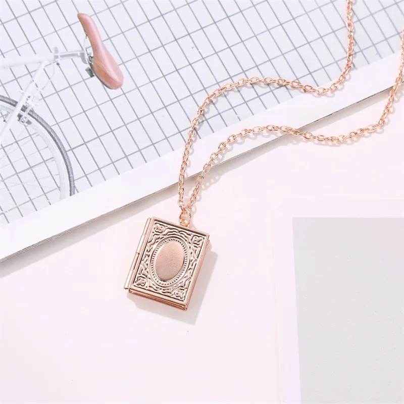 Фоторамка ожерелье Волшебная книга кулон открытый медальон квадратная коробка серебро розовое золото цвет для женщин мужчин цепь эффектное очарование ювелирные изделия