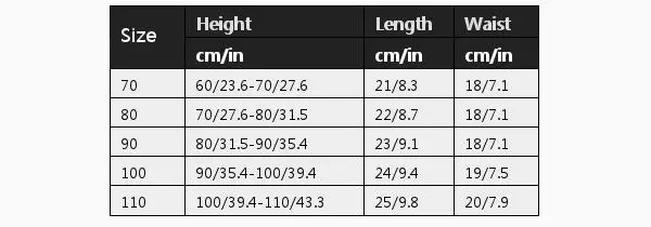 | Размер::80 | Высота (см/дюйм)::70/27.6-80/31.5 | Длина (см/дюйм)::22/8.7 | Талия (см/дюйм)::18/7.1 |