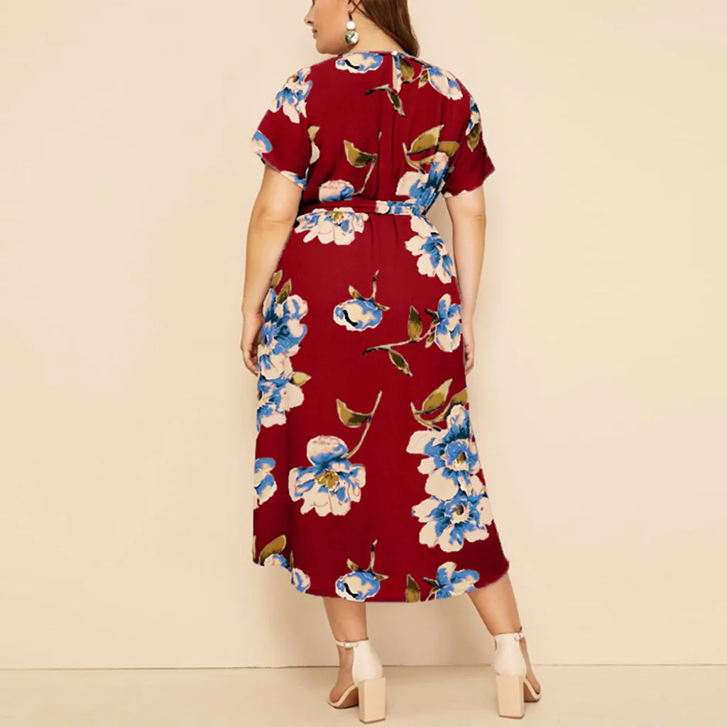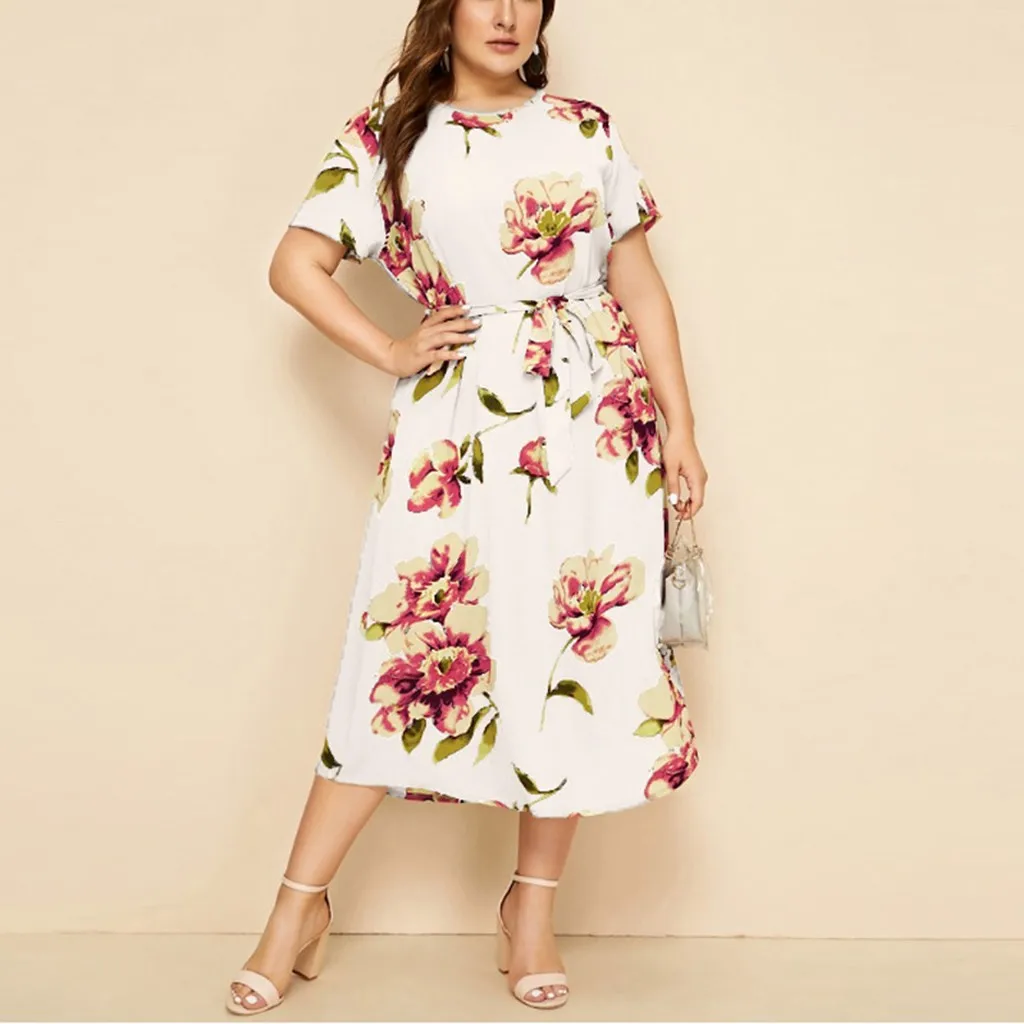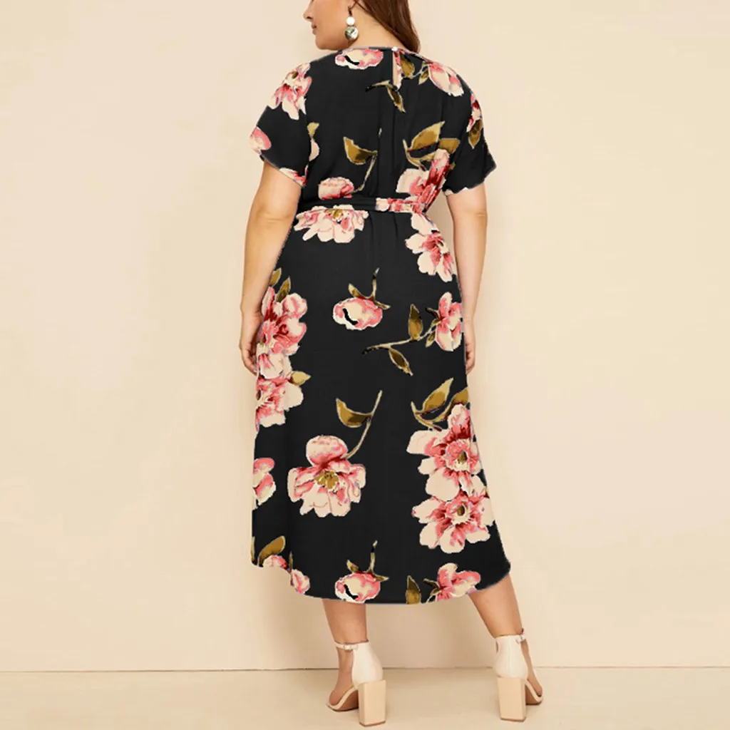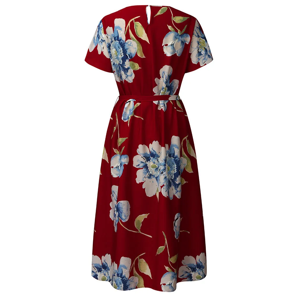 Женское Богемное платье макси, Богемное платье-рубашка с круглым вырезом, коротким рукавом и цветочным принтом на бретельках, Богемное платье на лето L-5XL