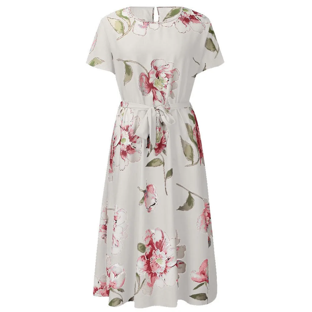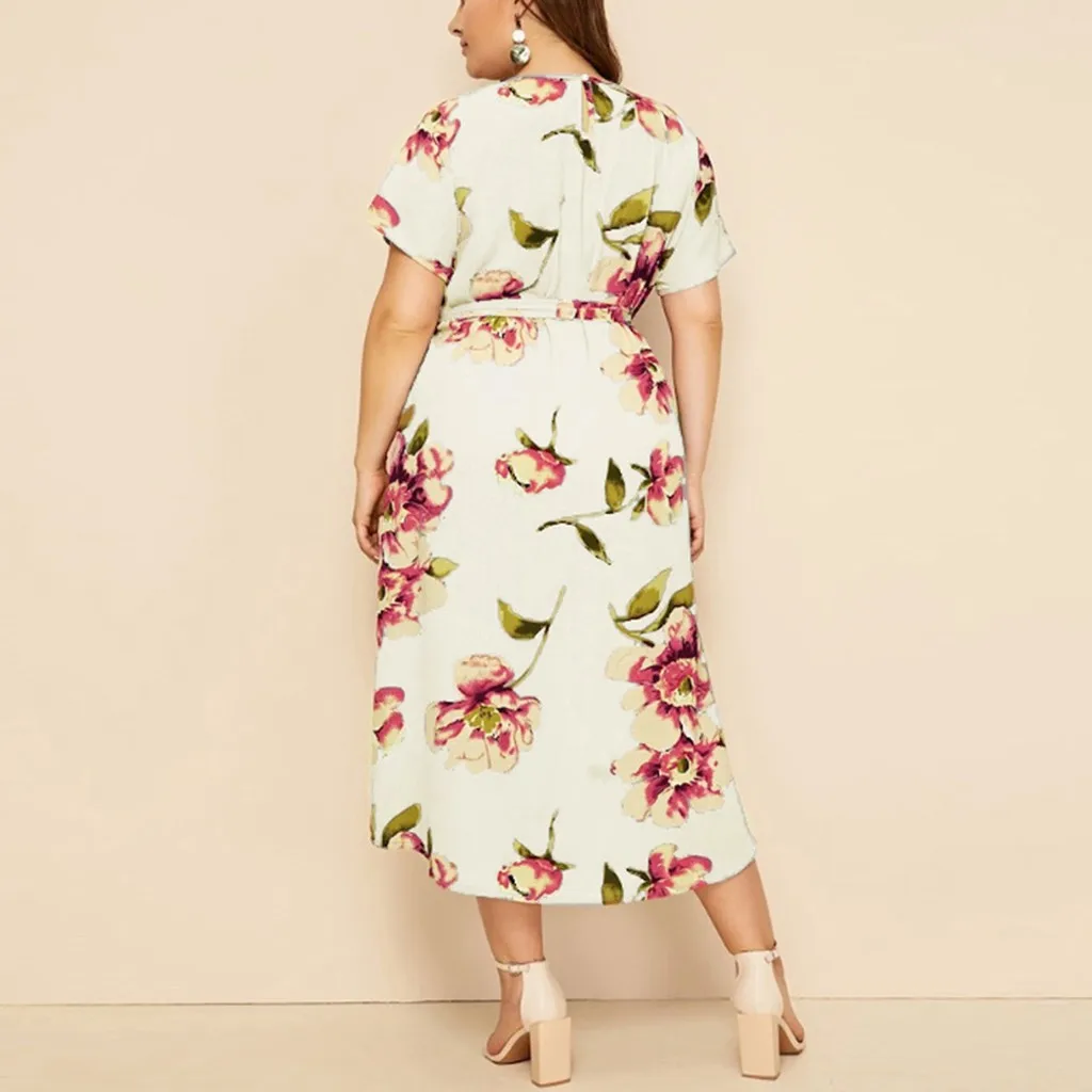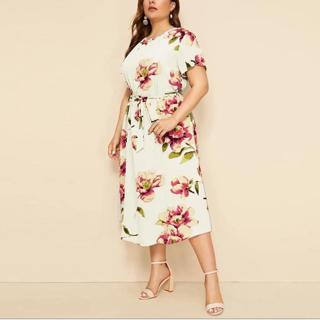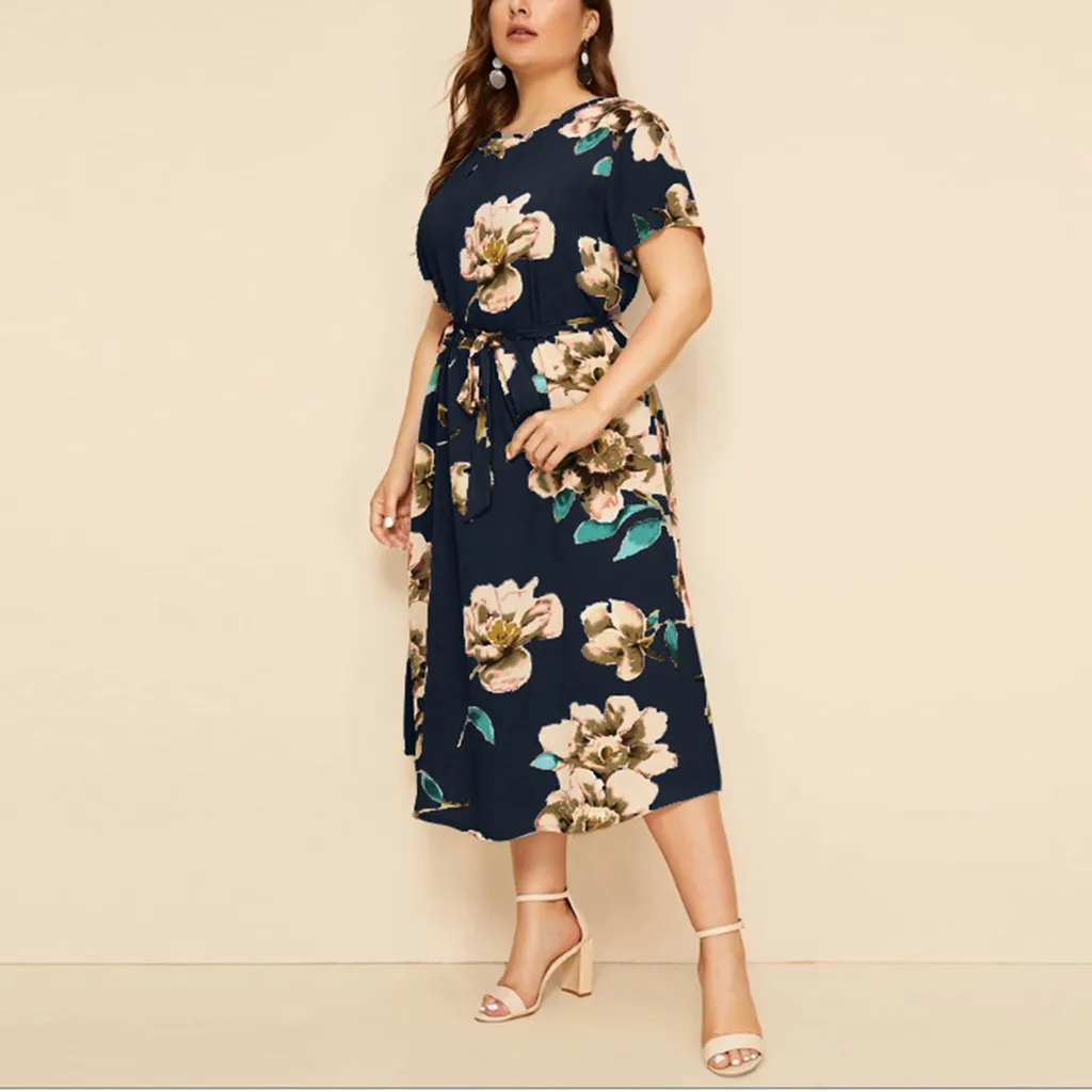 Женское Богемное платье макси, Богемное платье-рубашка с круглым вырезом, коротким рукавом и цветочным принтом на бретельках, Богемное платье на лето L-5XL