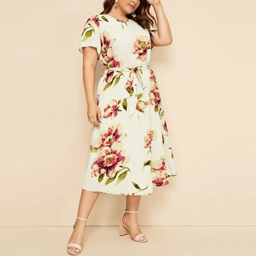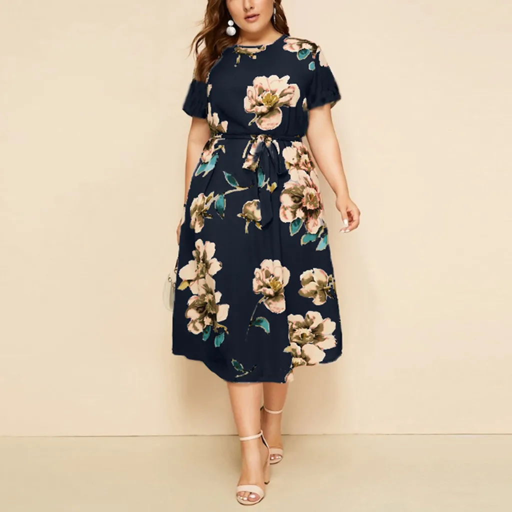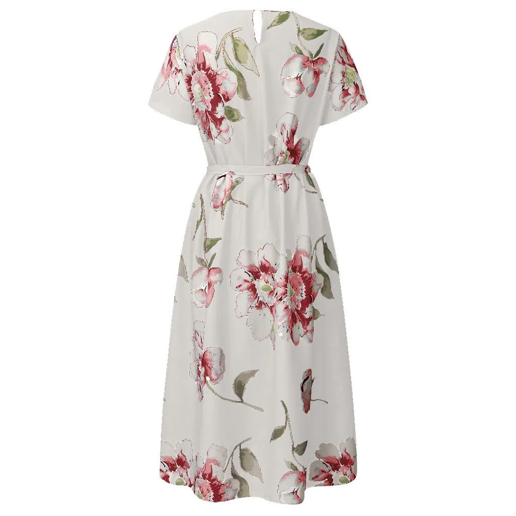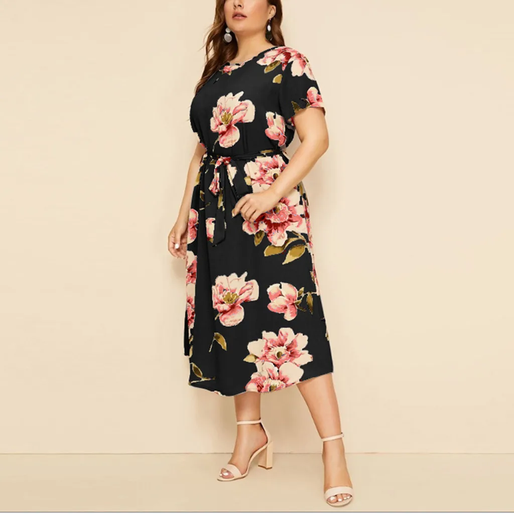 Женское Богемное платье макси, Богемное платье-рубашка с круглым вырезом, коротким рукавом и цветочным принтом на бретельках, Богемное платье на лето L-5XL