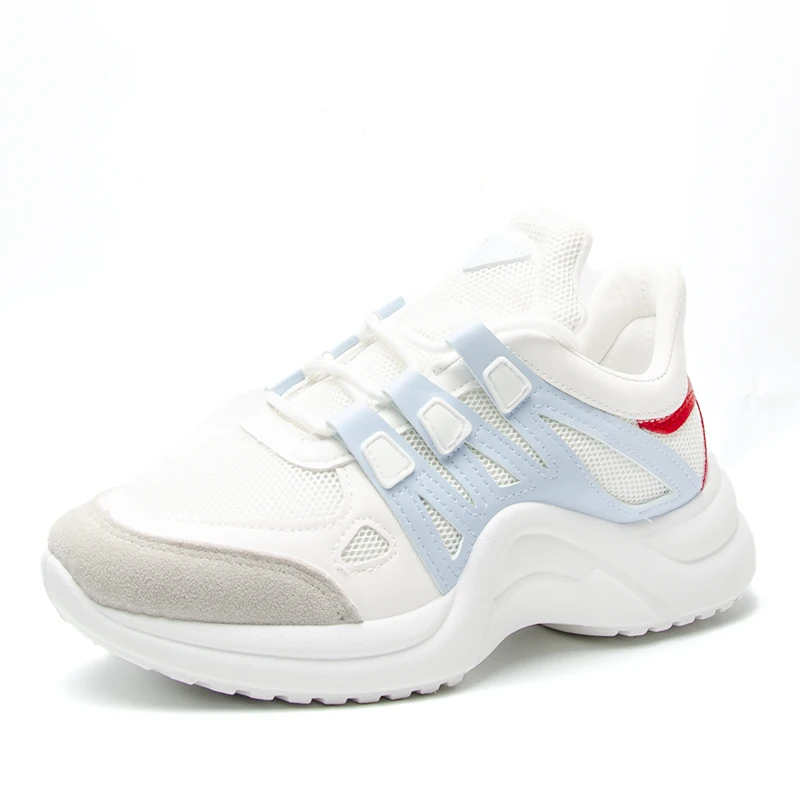 Массивные кроссовки для женщин толстая подошва платформа плоская шнуровка
