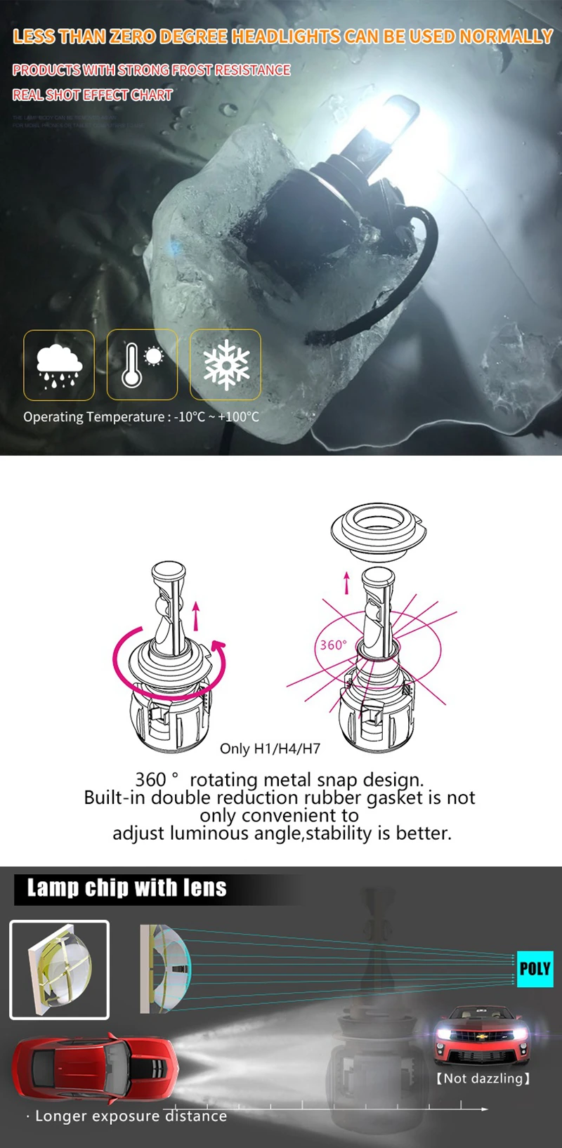 Рабочее напряжение: 12-24 В постоянного тока Светодиодный Цвет: 6000K Мощность: 60 Вт/шт, 120 Вт/пара Люмен: 7800лм/шт, 15600лм/пара (Чип на плате) Срок службы: 30,000hrs Гарантия: 1 год Водонепроницаемый: IP68 Система охлаждения: алюминиевый медный радиатор и лопасти турбины Рабочая температура: -40 градусов-+ 110 градусов Применение: Автомобильный светильник, противотуманный светильник