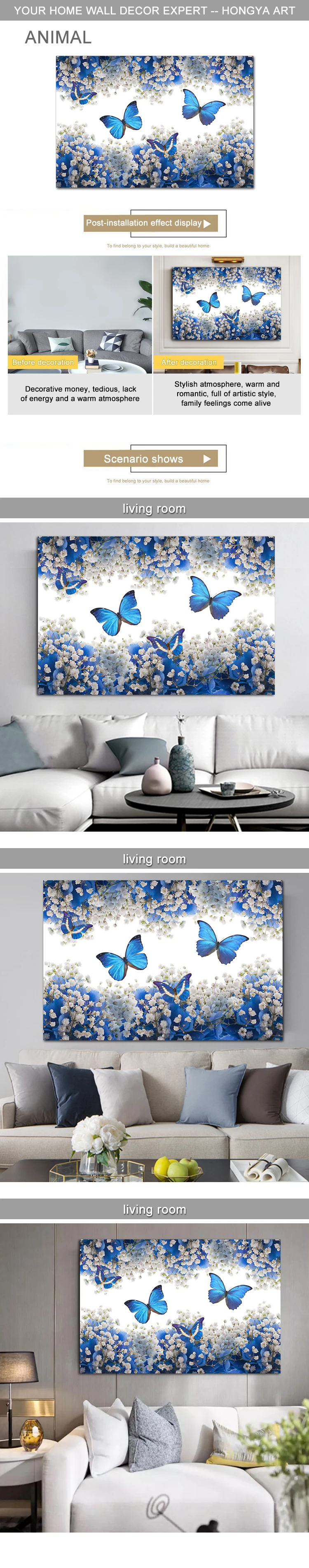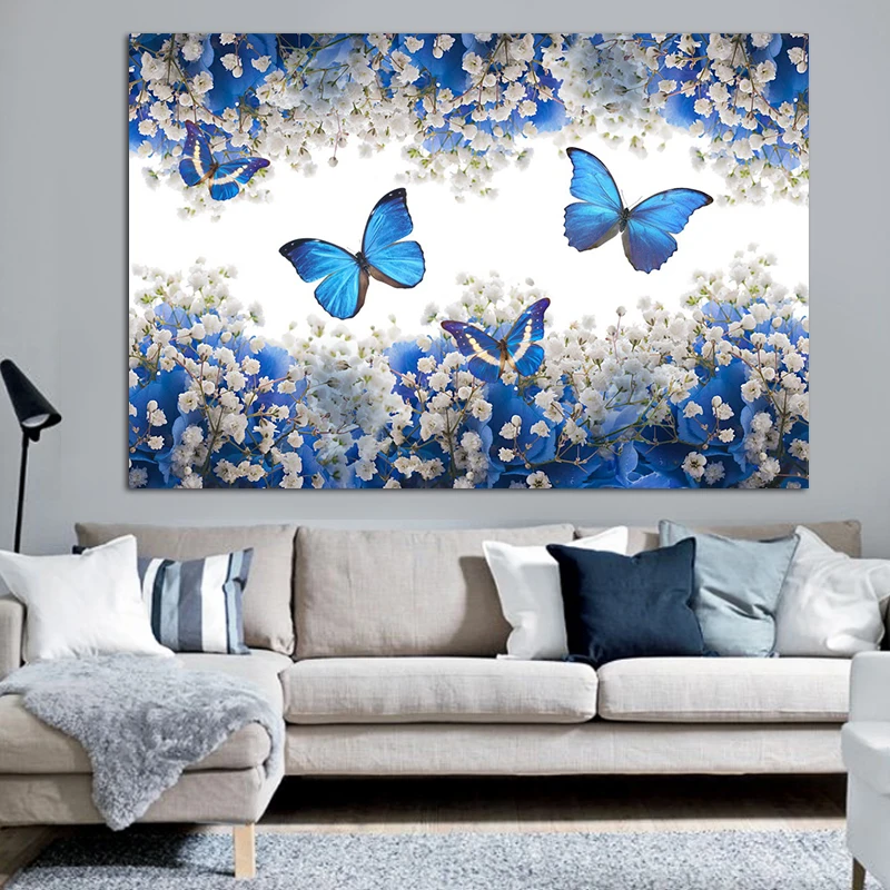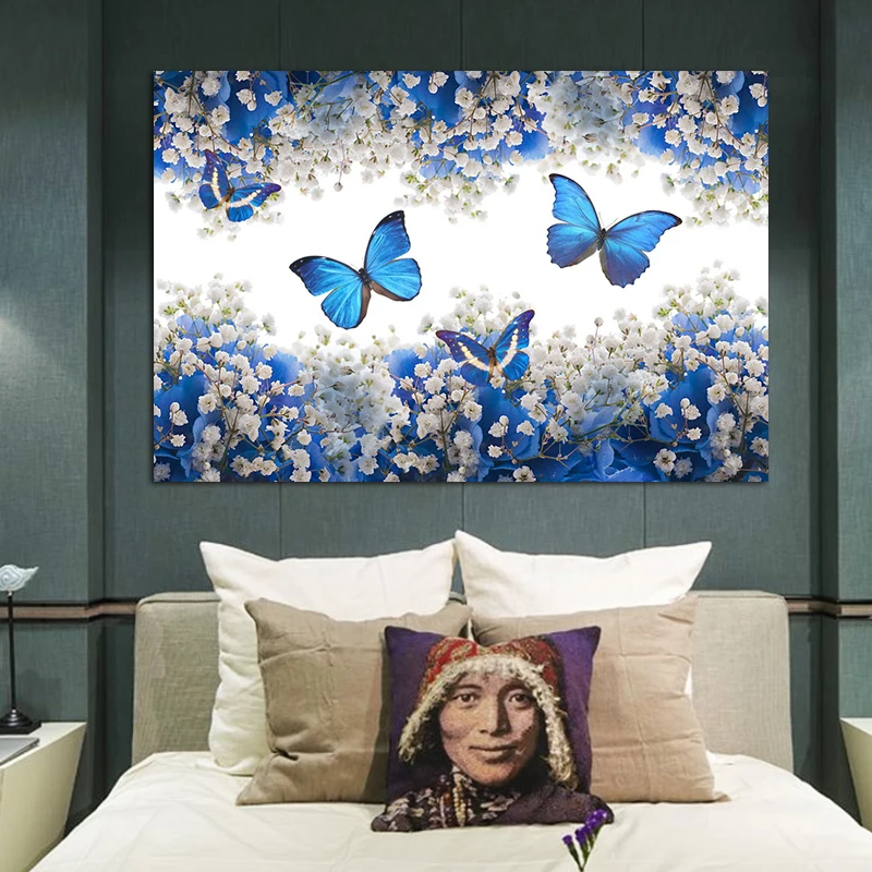 Картина на холсте, Художественная печать, Цветы бабочки, картины на стене, скандинавский стиль, постеры, свадебное украшение, без рамки