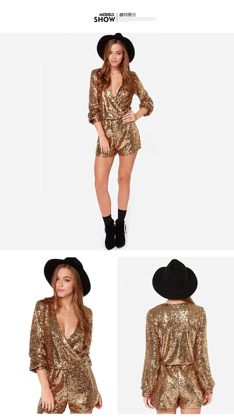 Сексуальный женский Блестящий Комбинезон с блестками красные вечерние