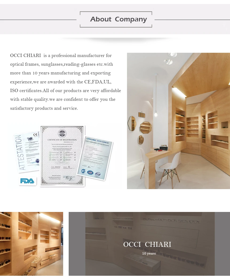 1. Очки OCCI CHIARI mИз не выцветающих материалов, импортированных из Италии, они богаты по цвету и никогда не выцветают.