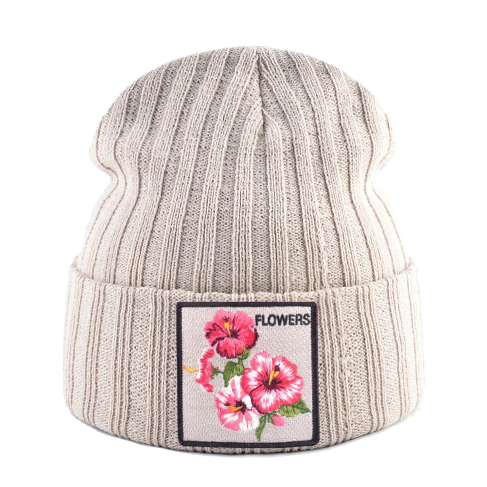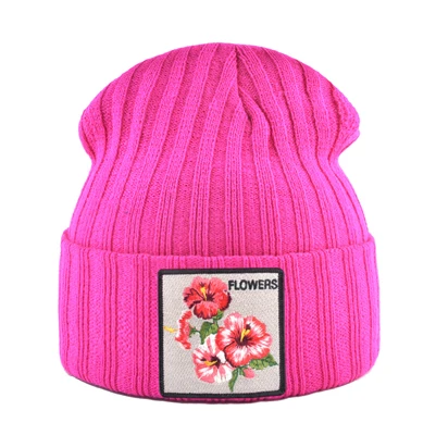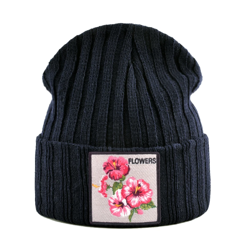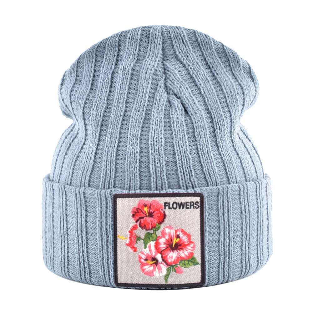 Женская шапка с цветочной нашивкой, осенне-зимние вязаные шапки бини, женские зимние мягкие двухслойные вязаные шапки, мужские шапки