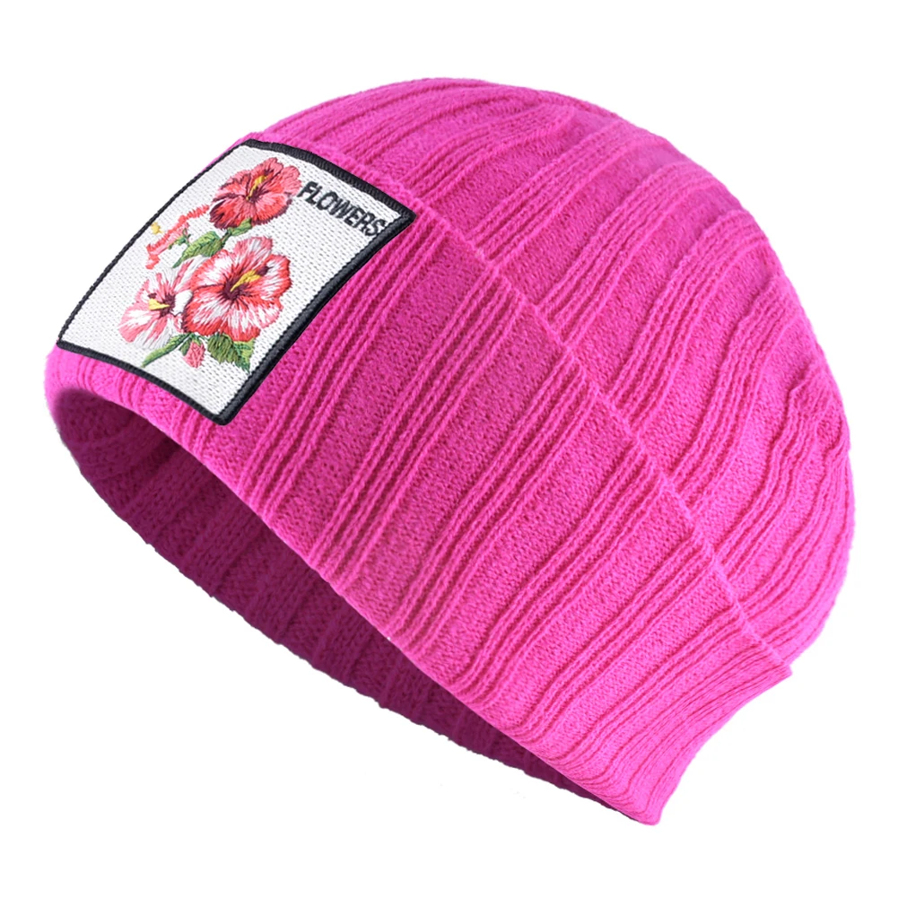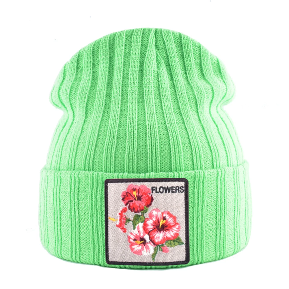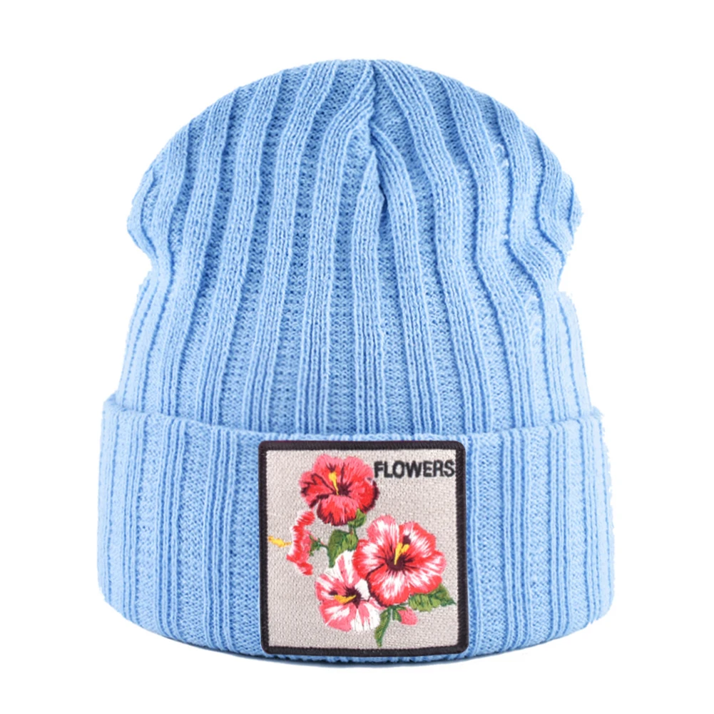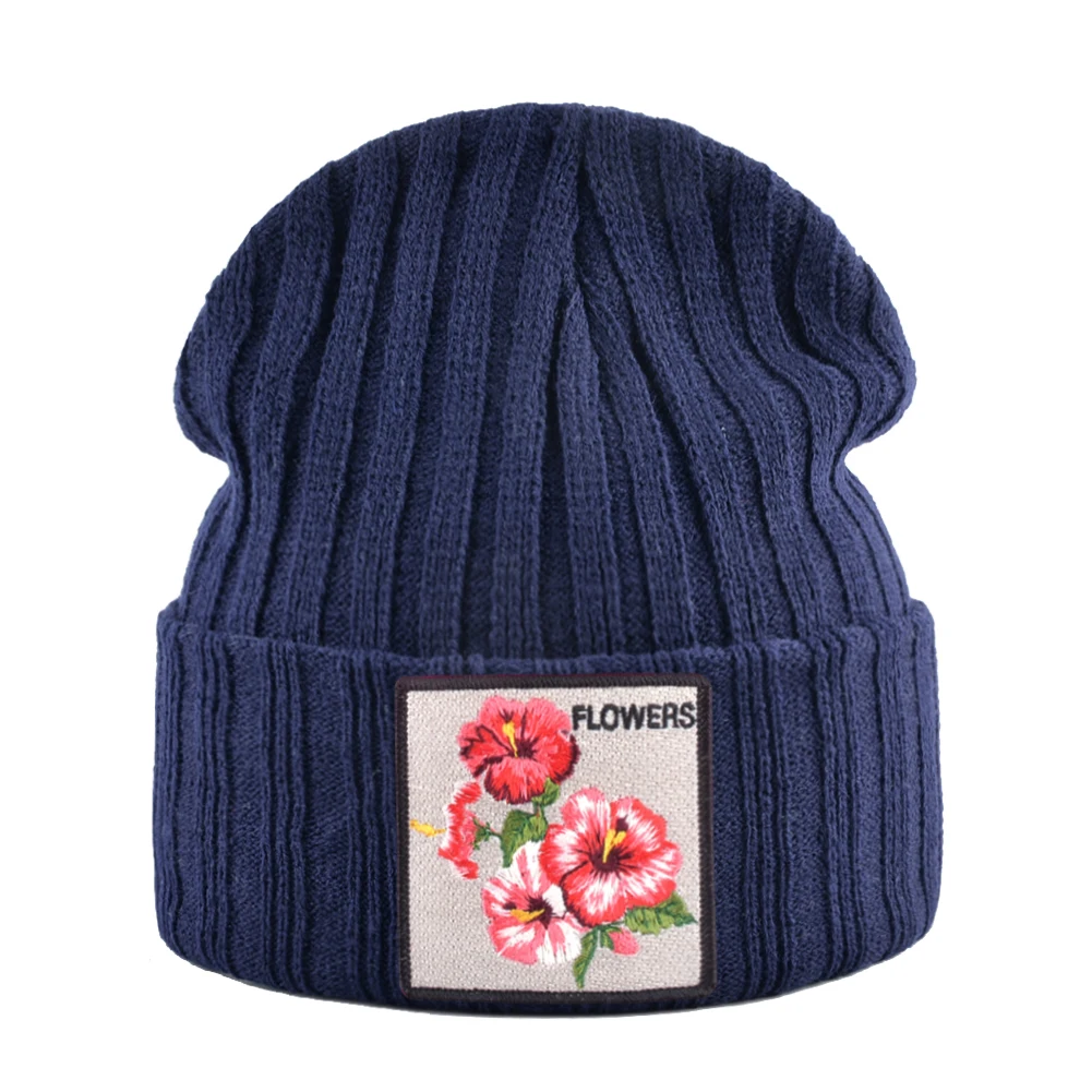 Женская шапка с цветочной нашивкой, осенне-зимние вязаные шапки бини, женские зимние мягкие двухслойные вязаные шапки, мужские шапки